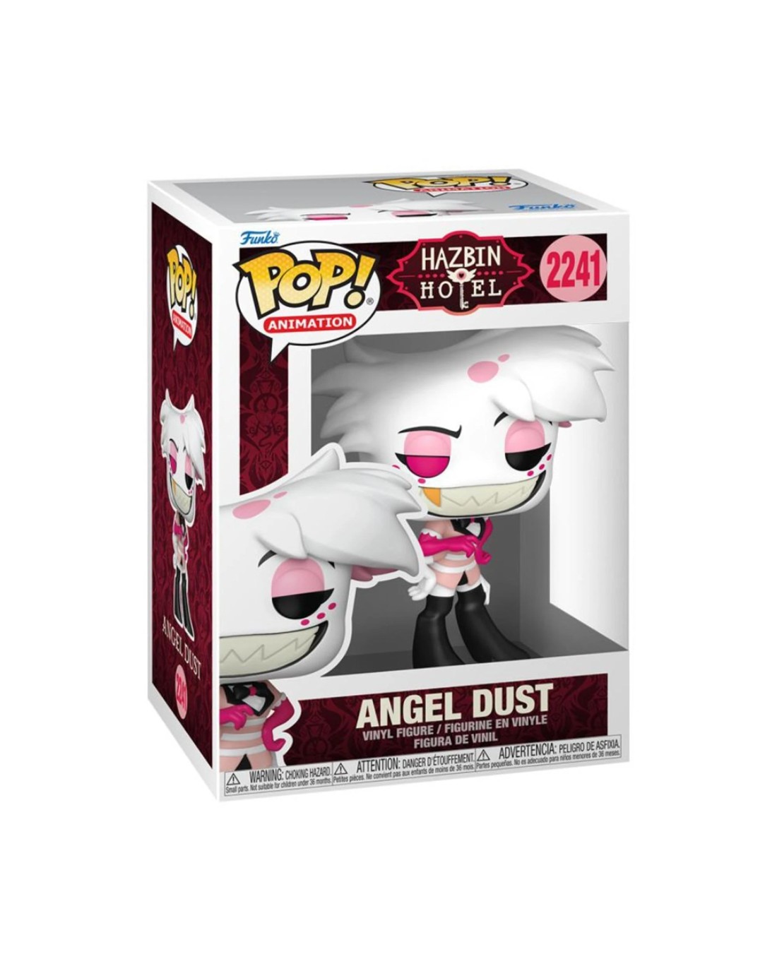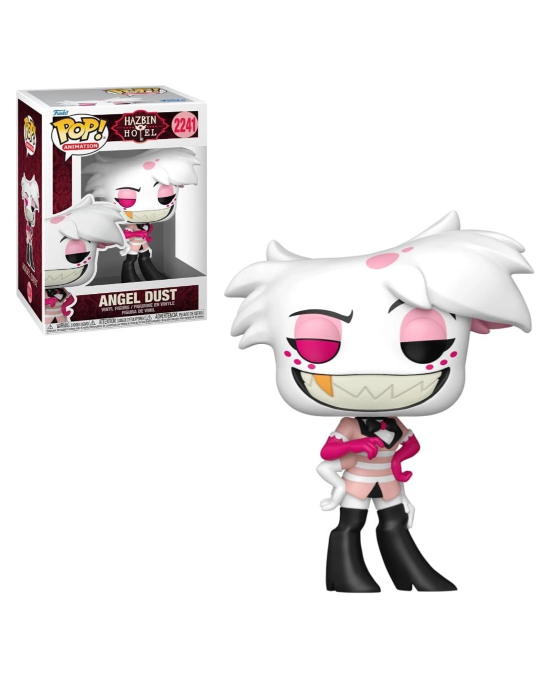 "Just don't get your taco in a twist, baby." The Hazbin Hotel cast is finally here in Pop! form! The flamboyant, charismatic spider-demon from Hazbin Hotel, the Angel Dust Pop! Figure features a striking white and pink design, with multiple limbs, showcasing his wide, toothy grin that carries a playful and sarcastic flair. Add the Hazbin Hotel - Angel Dust Pop! Vinyl Figure to your Funko Collection today! Ages: 3+