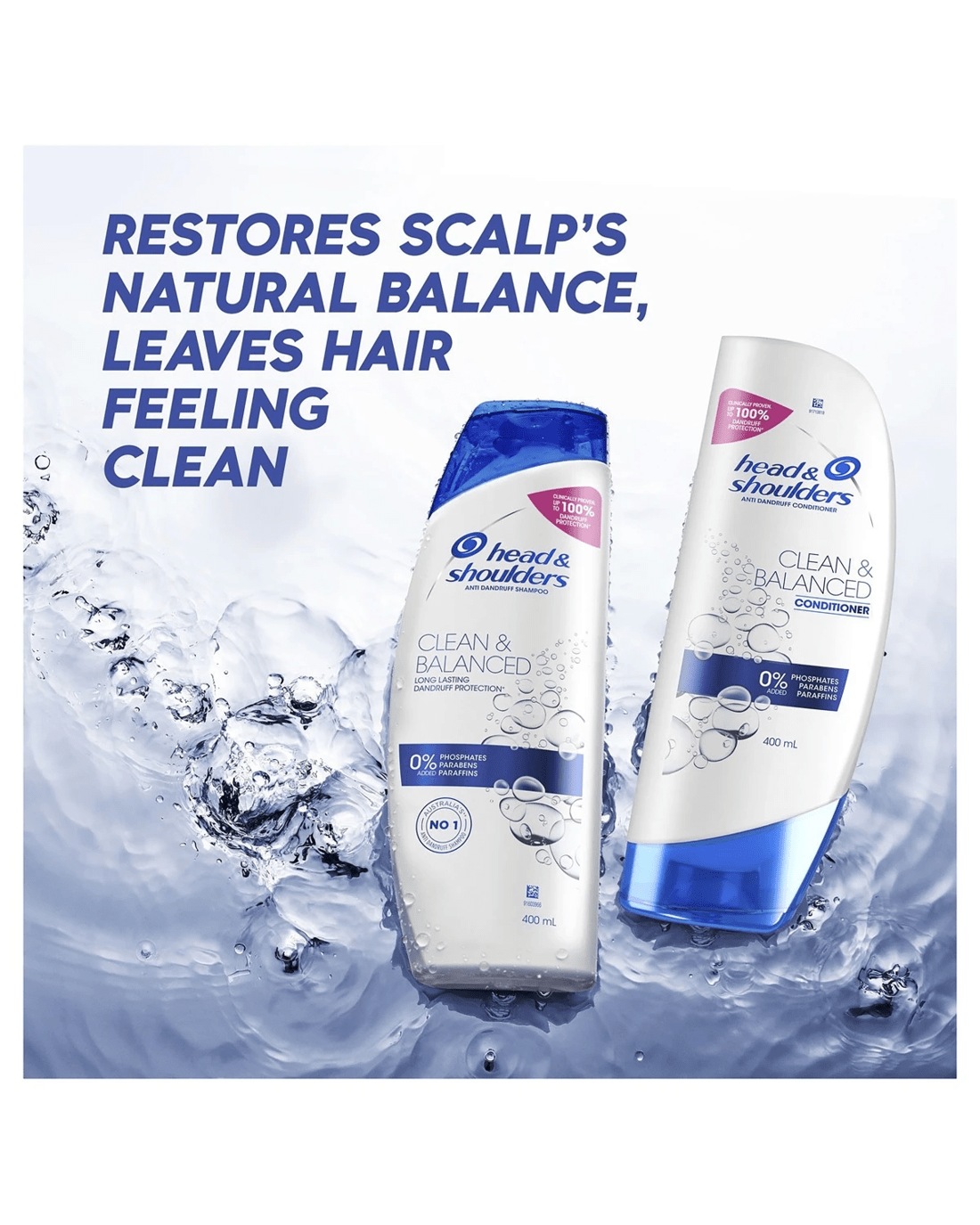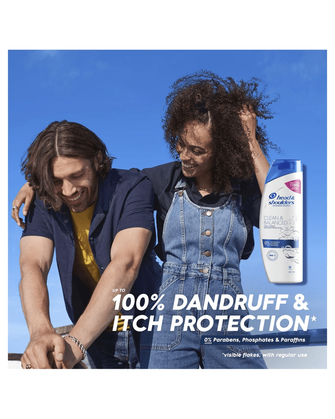 Looking for a solution to fight dandruff* with lasting effect? Use Head & Shoulders Clean & Balanced Shampoo, Australia’s #1 Anti Dandruff Shampoo^ and Dermatologists’ Recommended Brand+. Our clinically proven technology provides up to 100% dandruff* and itch protection**, while staying gentle on your scalp and hair. With 0% Added Paraben, Phosphate and Paraffins added, this pH balanced formula is designed for every wash as part of your haircare routine.#Head and Shoulders #Shampoo #Anti Dandruff Clean & Balanced.