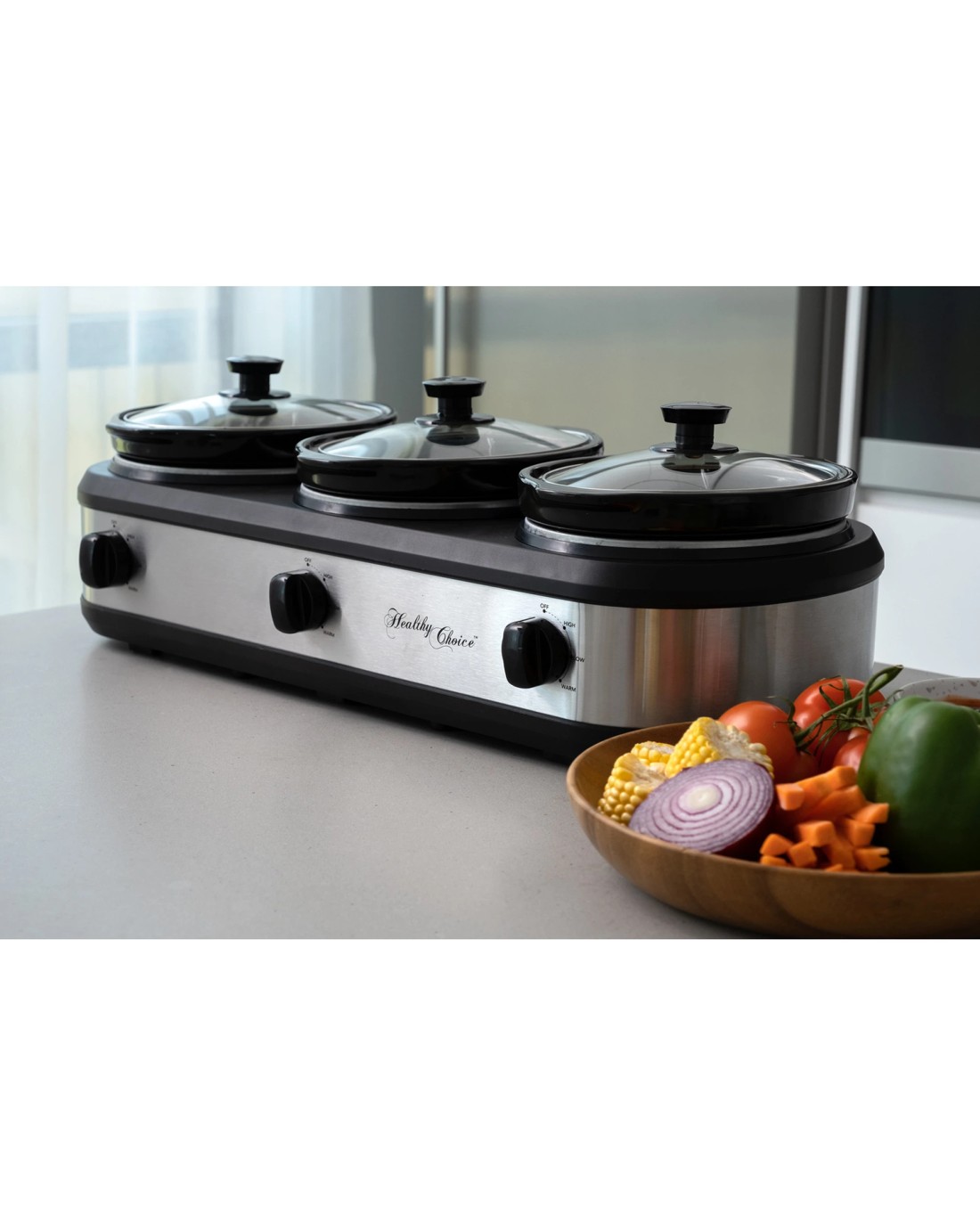Sold by KG SuperStoreHealthy Choice 405w Electric 3 Pot Slow Cooker/2.5l Ceramic Cooking Pots - Silver