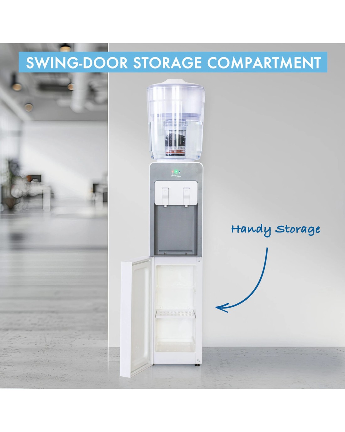 - Dual-taps (room temperature or chilled water)