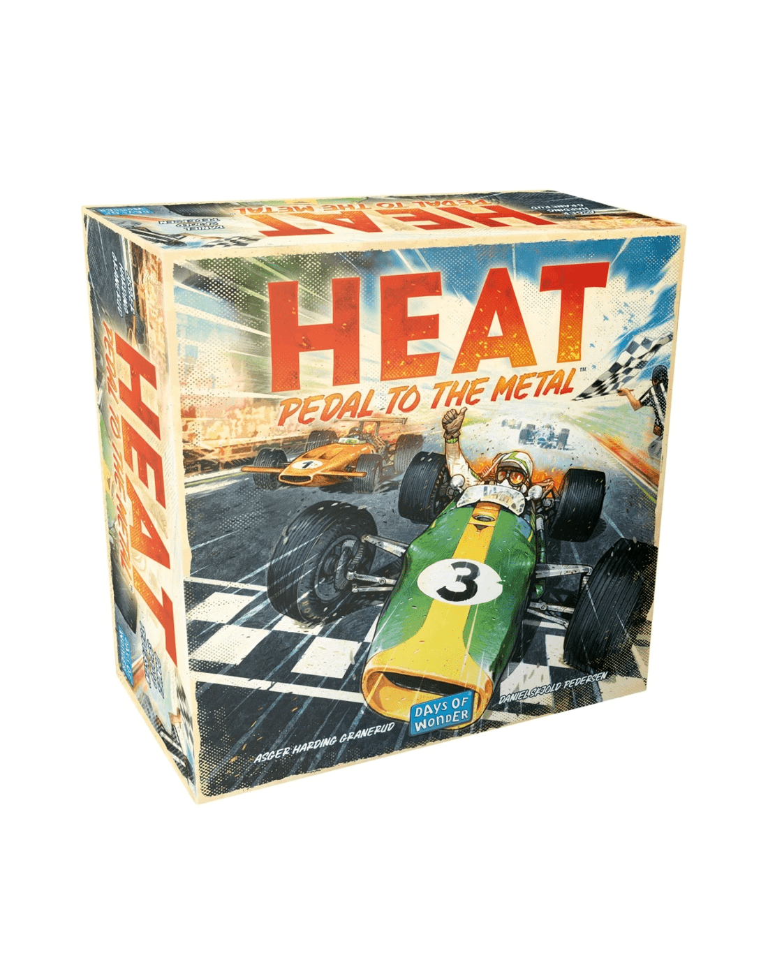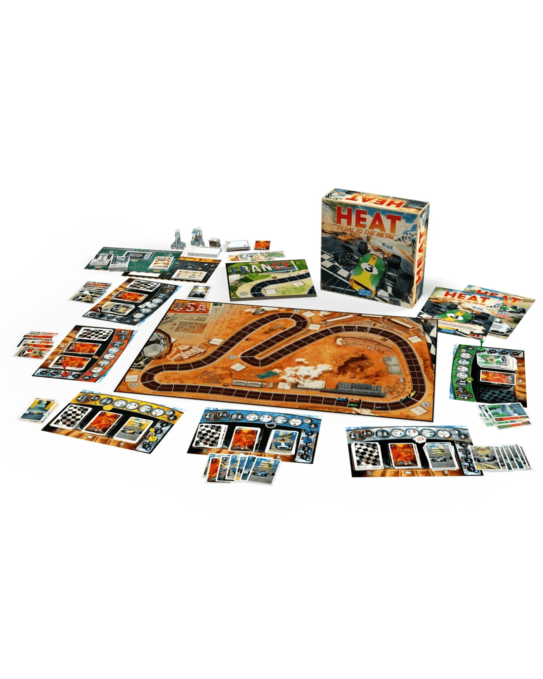 Based on simple and intuitive hand management, Heat: Pedal to the Metal puts players in the driver's seat of intense car races, jockeying for position to cross the finish line first, while managing their car's speed if they don't want to overheat. Selecting the right upgrades for their car will help them hug the curves and keep their engine cool enough to maintain top speeds. Ultimately, their driving skills will be the key to victory!