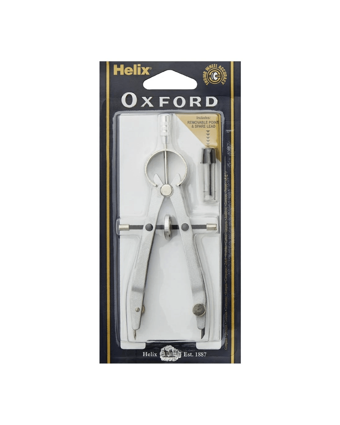 This Helix Oxford Springbow Compass is ideal for use with technical and mathematic drawing to create perfect circles and arcs. It is self centering and has a thumb wheel which allows you to make precise adjustments to ensure accuracy in your drafting.
