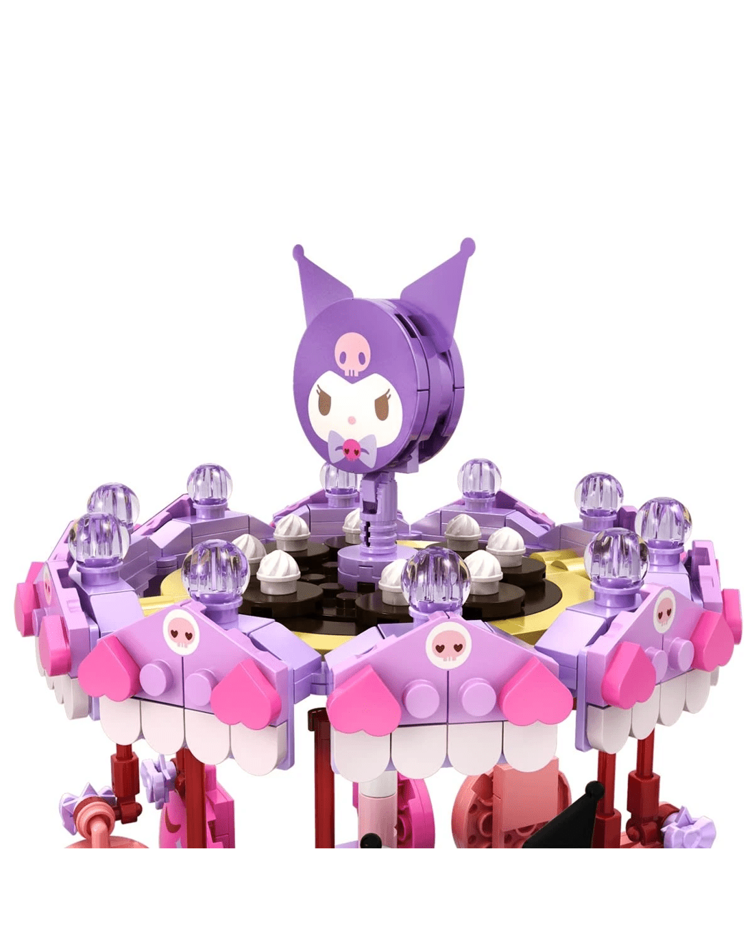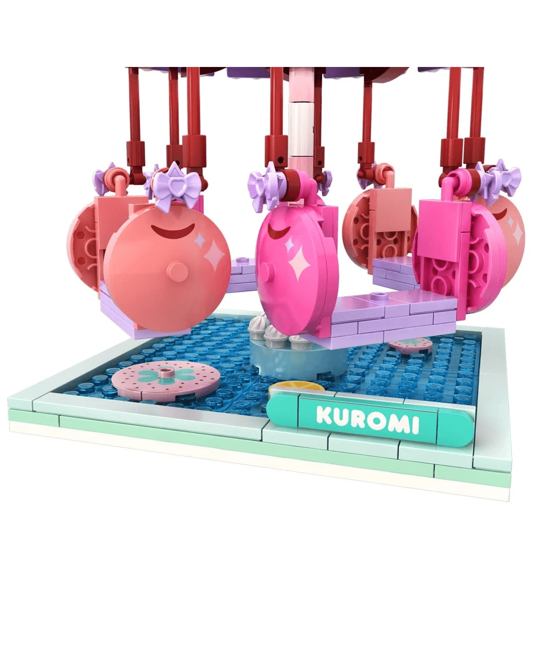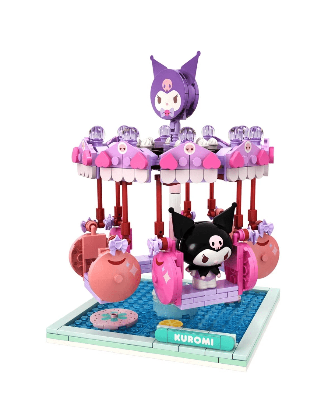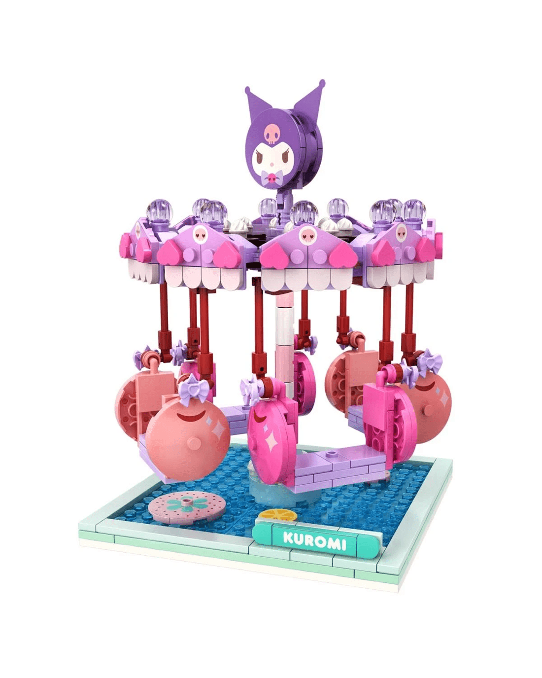 Kuromi Swing Ride comes with 439 pieces, complete with a spinning carousel and swinging cherry seats.