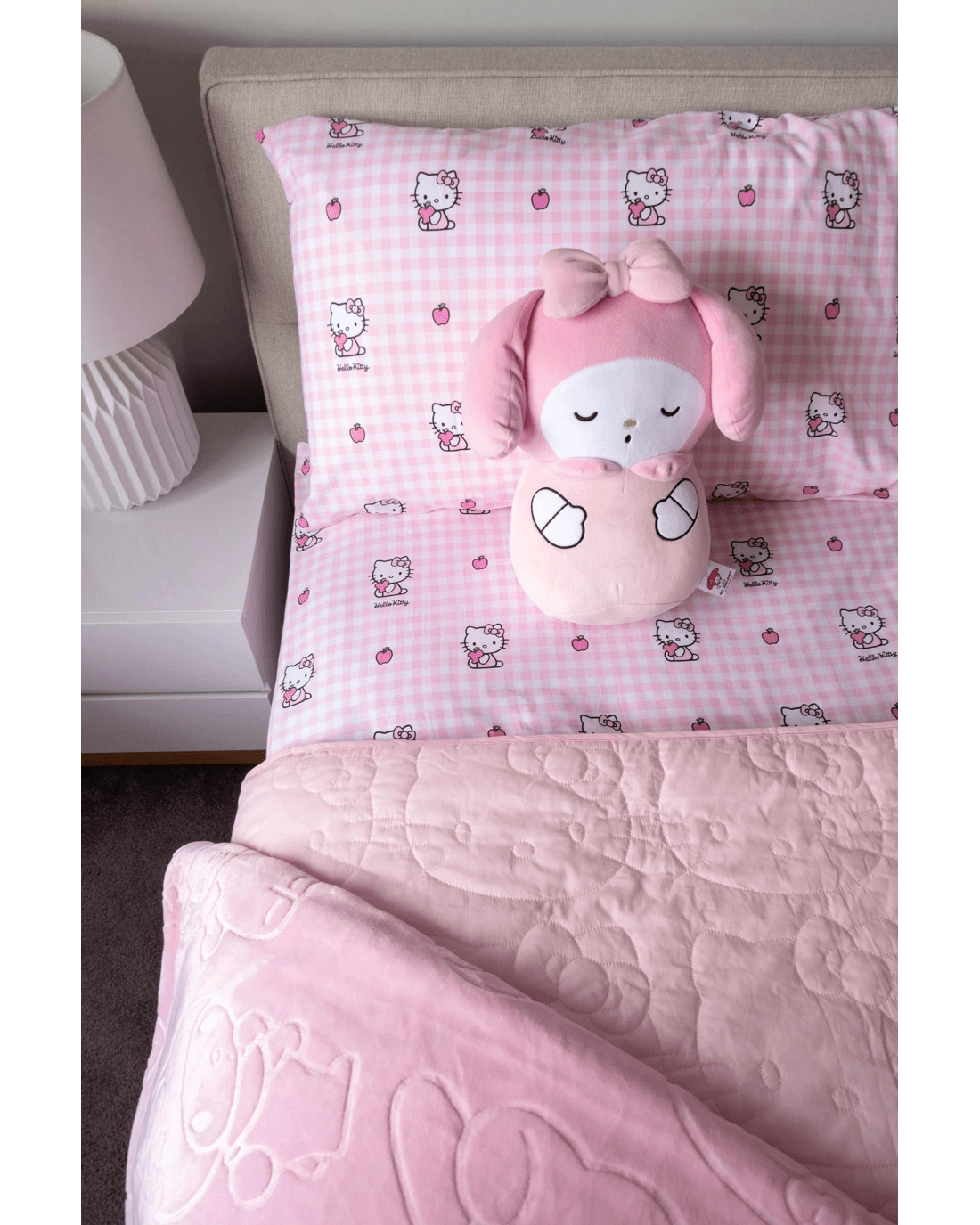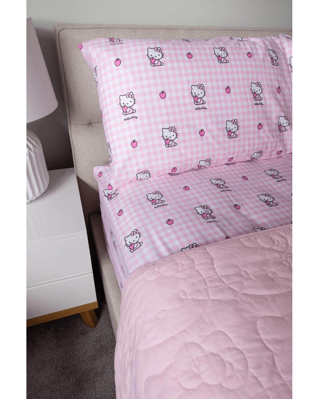 Transform your little one's bedroom into a whimsical haven with the Hello Kitty Kids Fitted Sheet Set. Adorned with a delightful pink gingham pattern showcasing the beloved Hello Kitty, this set is perfect for fans and adds a touch of charm to any child's space. Crafted from soft and durable cotton, it ensures a cosy night's sleep while maintaining breathability for ultimate comfort. Ideal for kids who adore playful designs!Features
