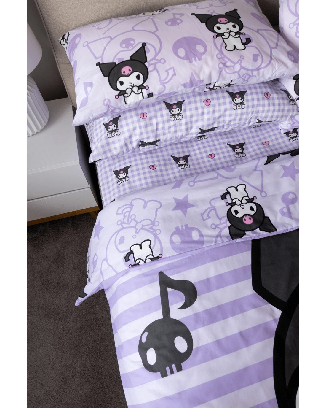 Get ready to transform your child's bedroom with the fun and stylish Kuromi Fitted Sheet Set. Perfect for fans of Hello Kitty and Friends, this set brings a splash of vibrant personality to any space. Made from soft and breathable cotton, it ensures a comfy sleep experience for kids of all ages. Whether they are curling up with a good book or dreaming away, your little one's bed will be a cosy retreat.Features