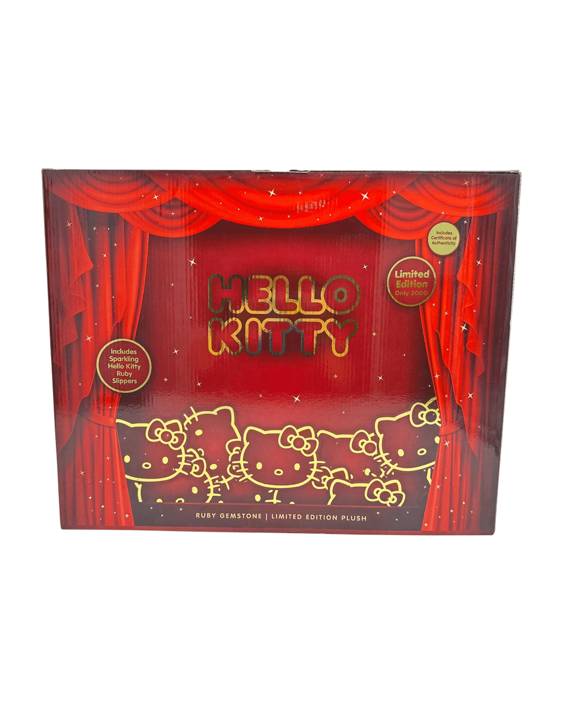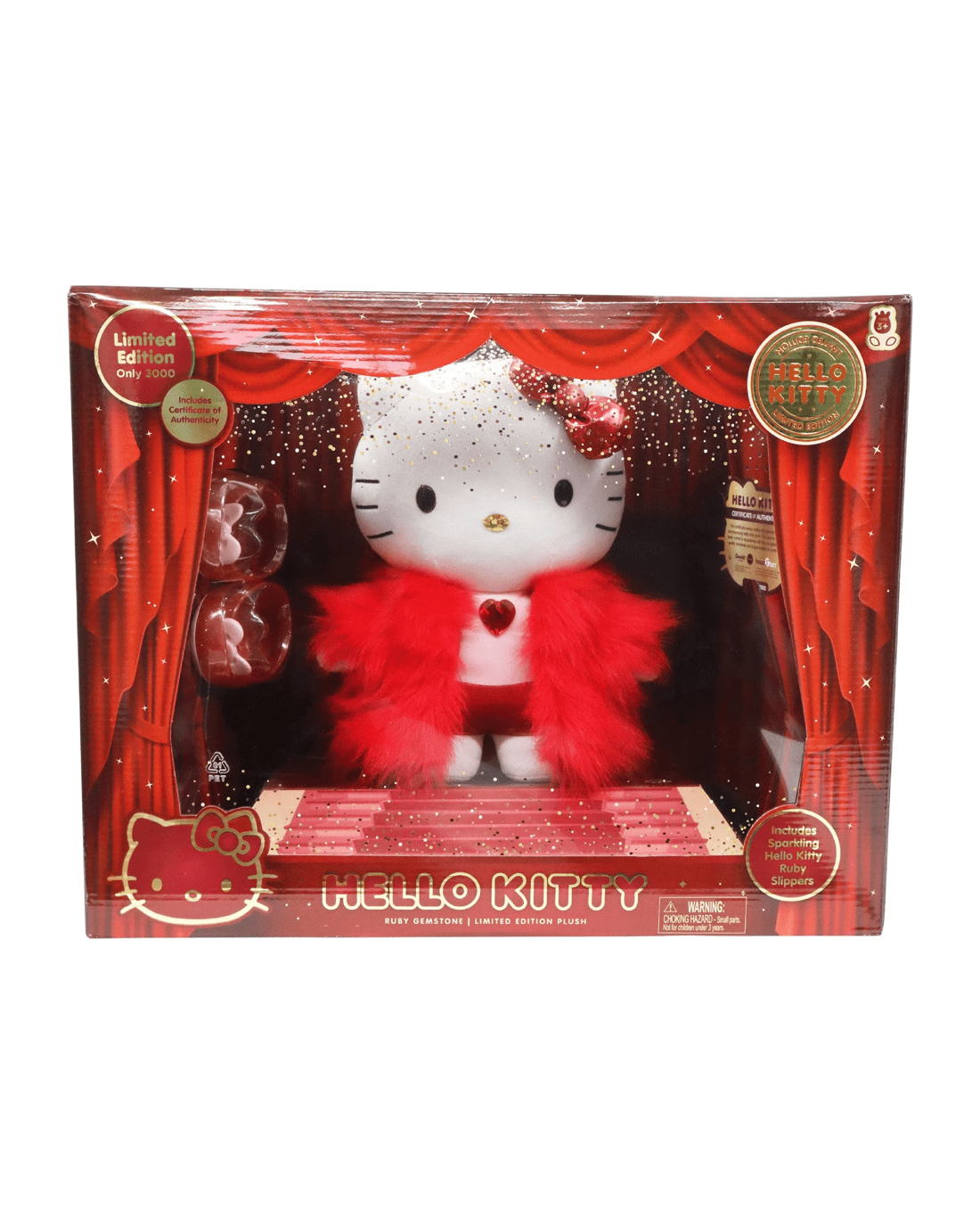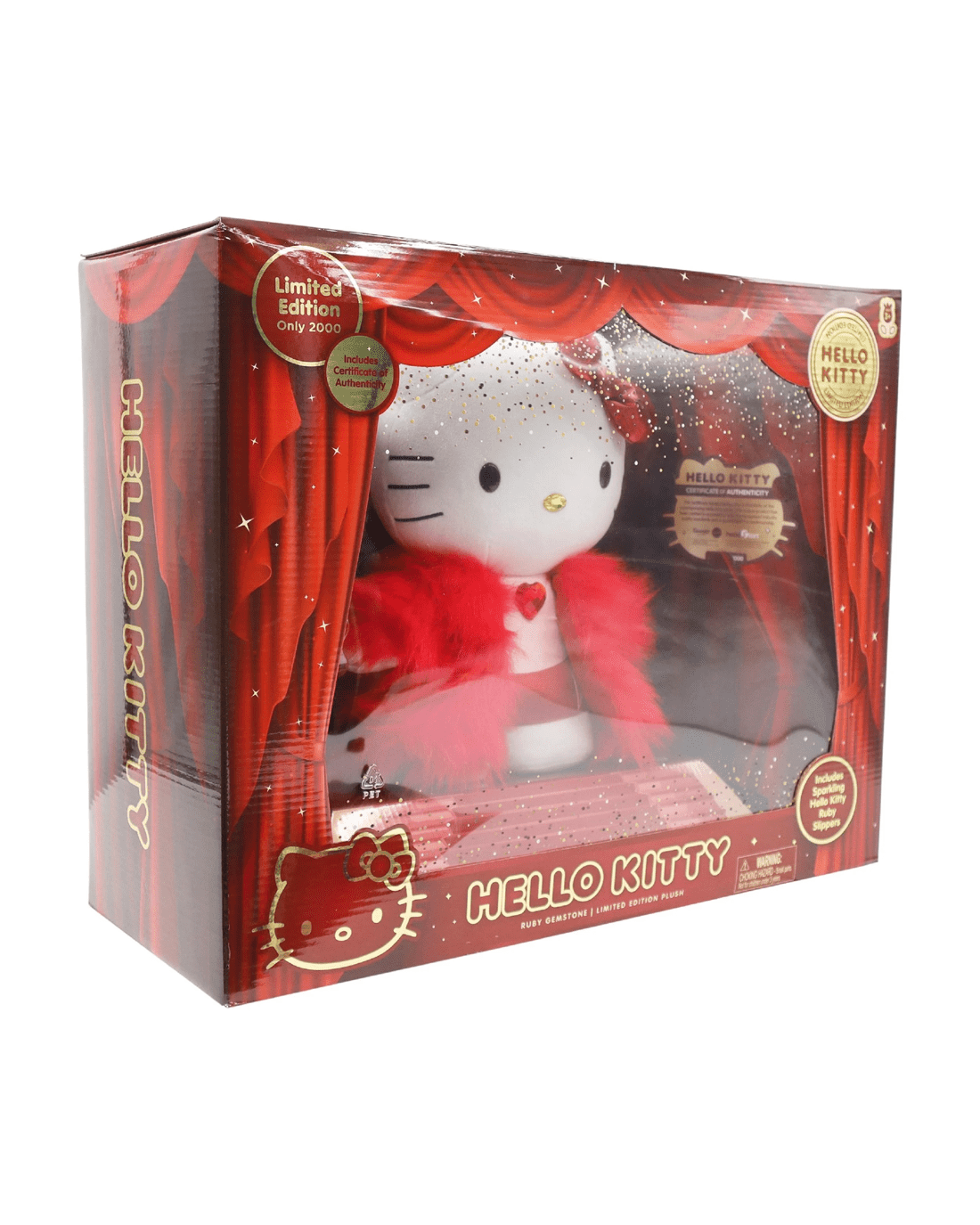 Welcome a touch of sparkle into your world with the Hello Kitty Le Gemstone Collection. This plush boasts a lavish ruby-themed outfit, featuring sumptuous faux fur and a glimmering crystal accent, making it an eye-catching addition to any display. With its exclusive ruby slippers and a stunning collector’s box, this limited edition piece feels truly special. The included numbered certificate of authenticity ensures it stands out as a prized keepsake—perfect for those who adore a blend of classic charm and luxury. Don’t let this shining gem pass you by—make it yours and cherish a little Hello Kitty magic every day.Features