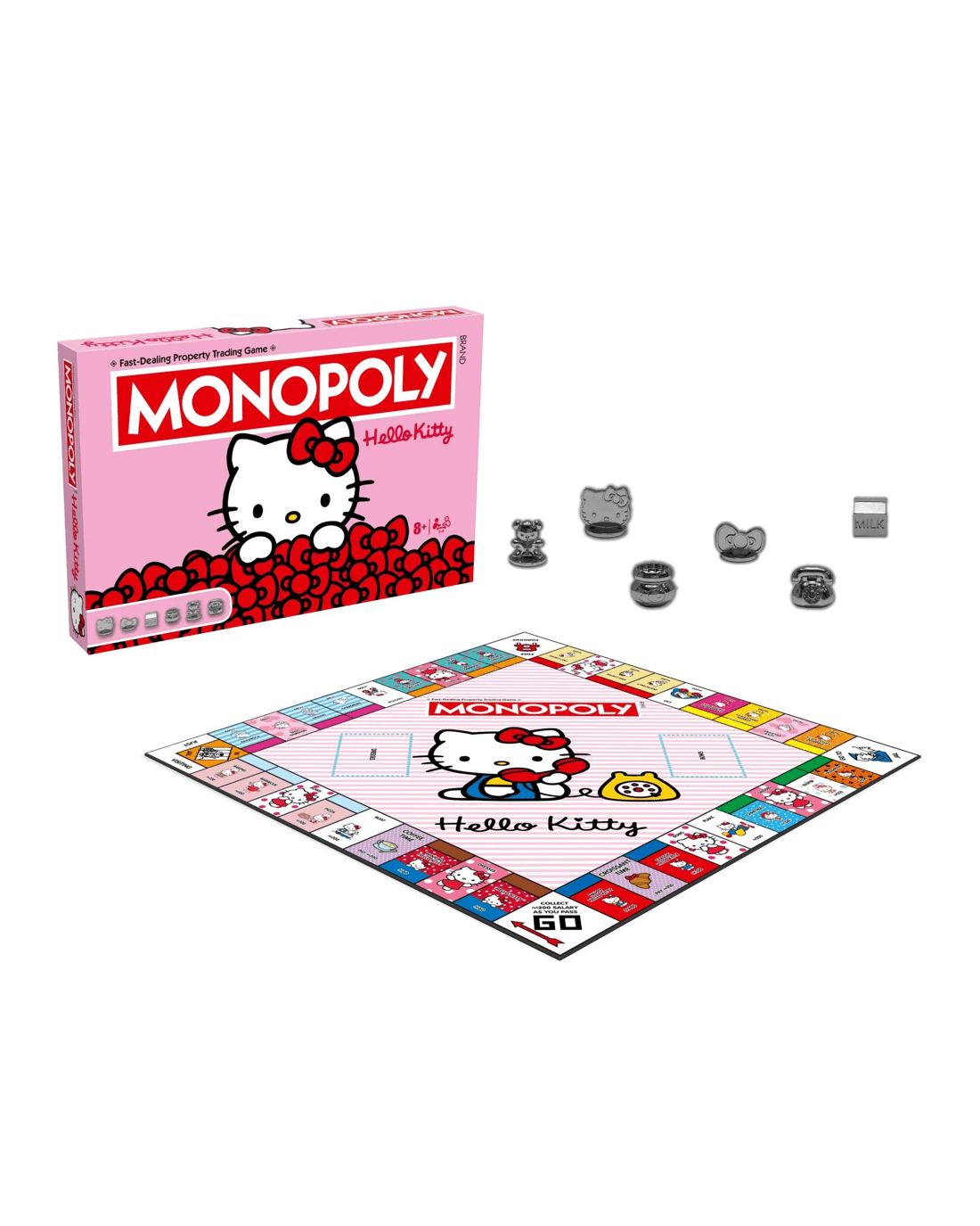 - PERFECT FOR HELLO KITTY FANS: This new Hello Kitty of Hasbro's classic board game Monopoly is perfect for 2–6 players and makes a great gift for fans aged 8 and up.
