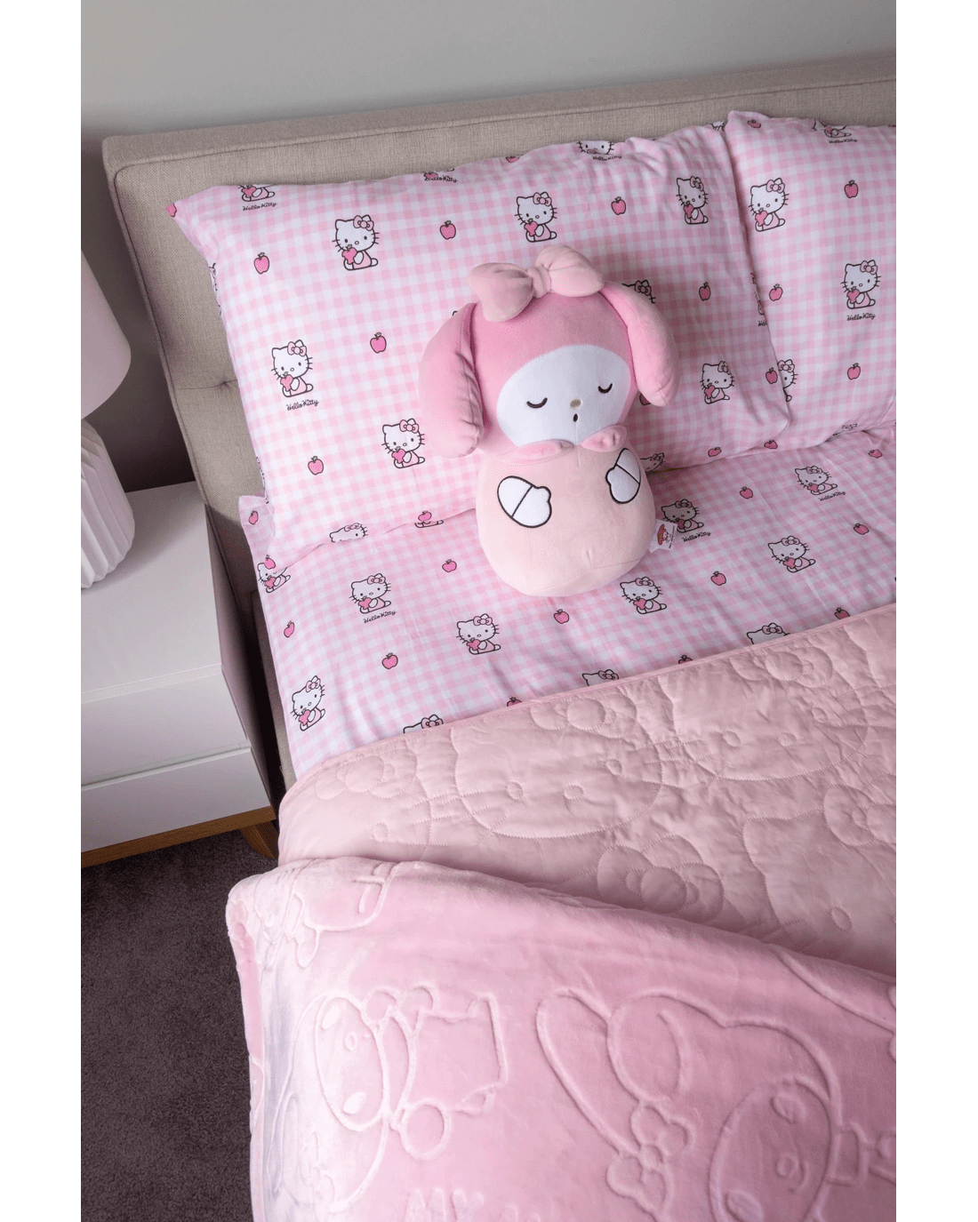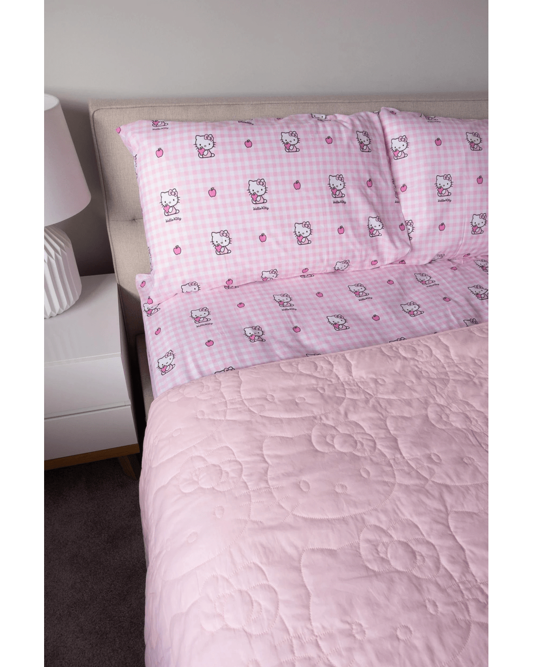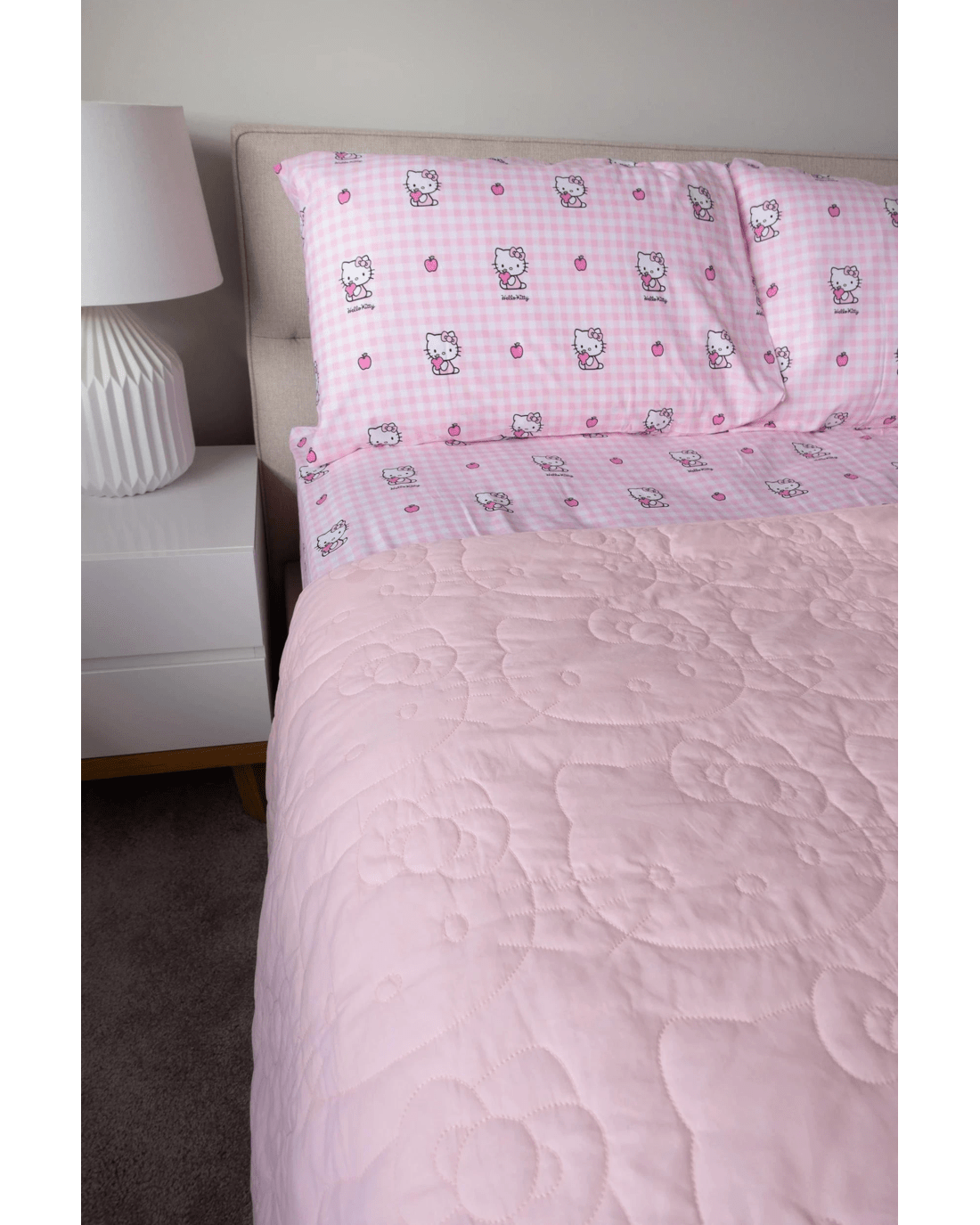 Transform your bedroom into a whimsical haven with the Hello Kitty Quilted Coverlet. Perfect for fans of all ages, this delightful coverlet features a charming Hello Kitty design that brings a cheerful touch to any space. Made with cotton rich fabrication for a soft feel, this coverlet not only offers comfort but also adds a fun pop of pink to your decor. Ideal for kids’ rooms or anyone looking to embrace a playful aesthetic.