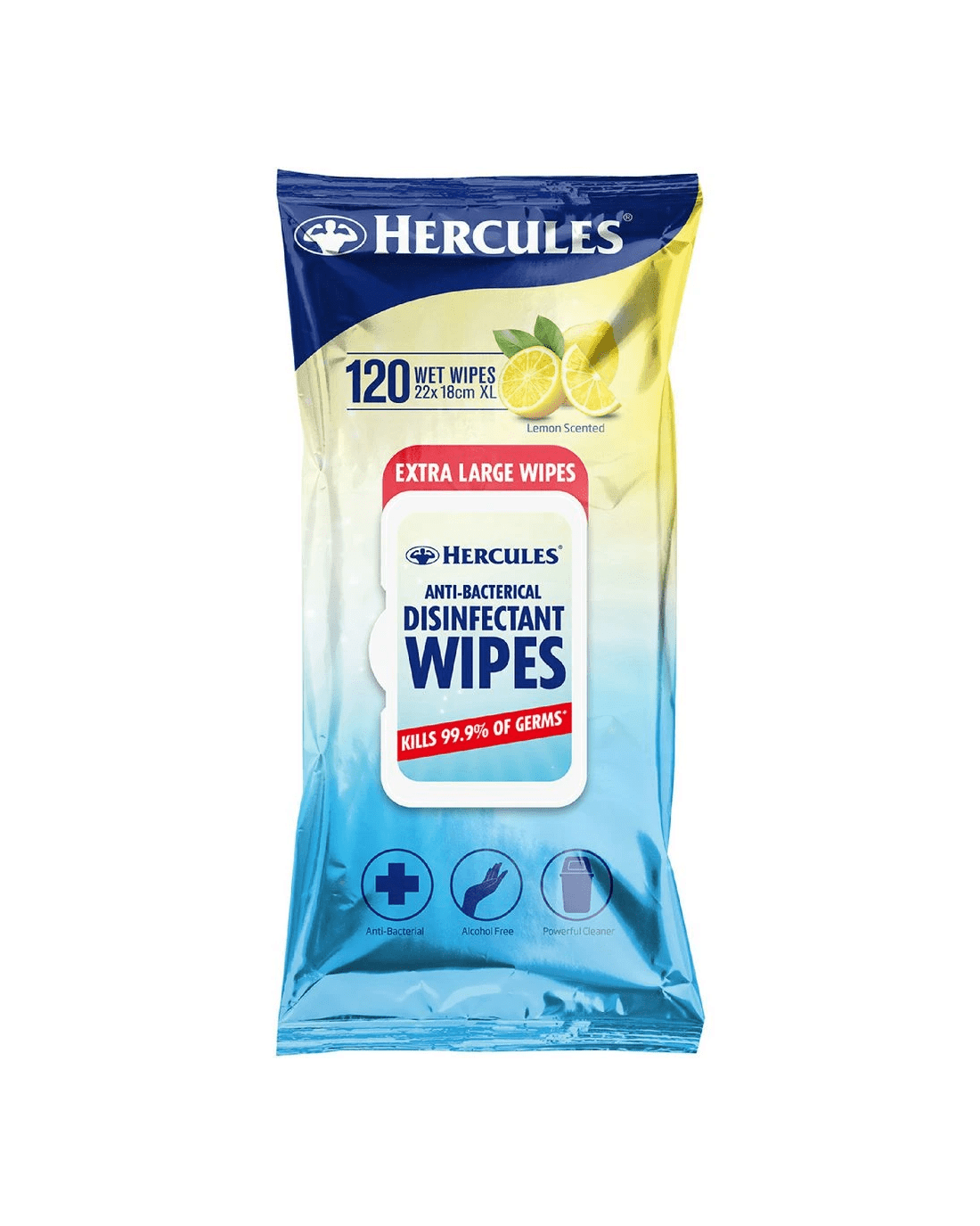 Hercules Antibacterial Disinfectant Wipes Lemon Extra Large