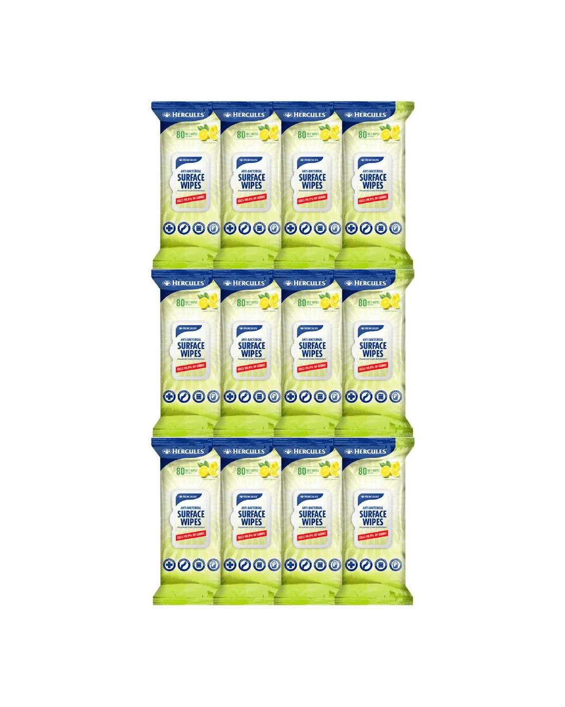 Sold by OfficeworksHercules Antibacterial Wipes 12 x 80 Pack Lemon
