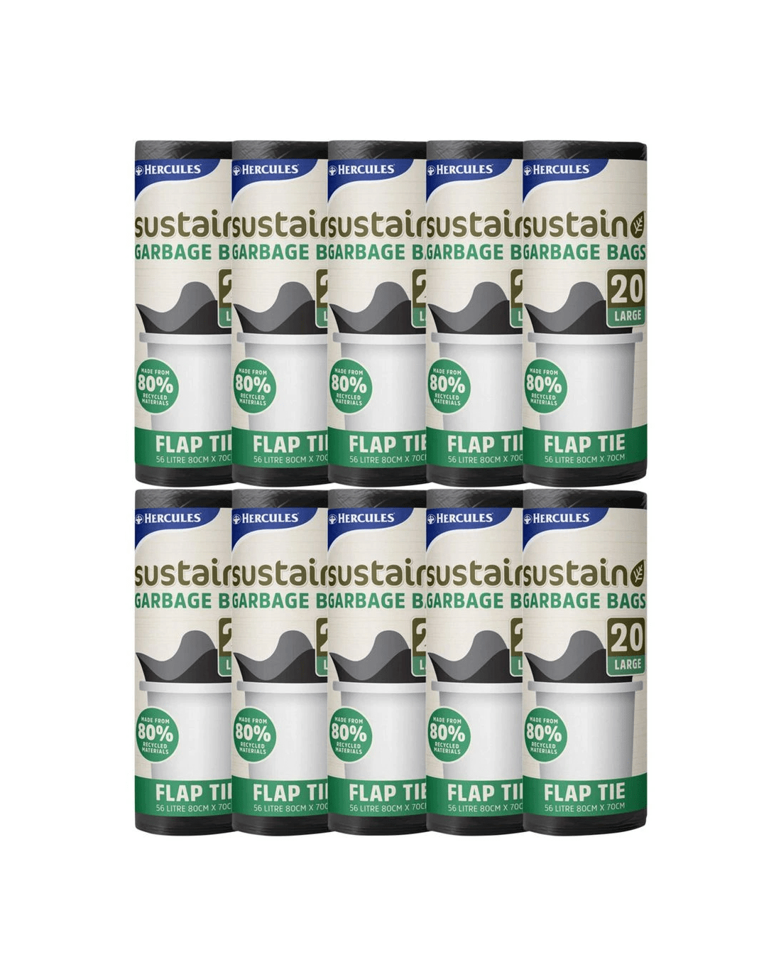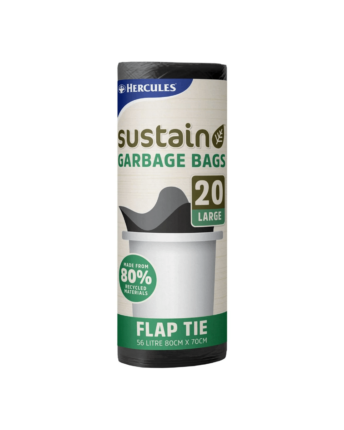 These Hercules Sustainable Garbage Bags are designed to fit larger bins to help you manage waste. They have an easy flap tie closure and a sustainable construction of more than 80% plastic for your environmental peace of mind.