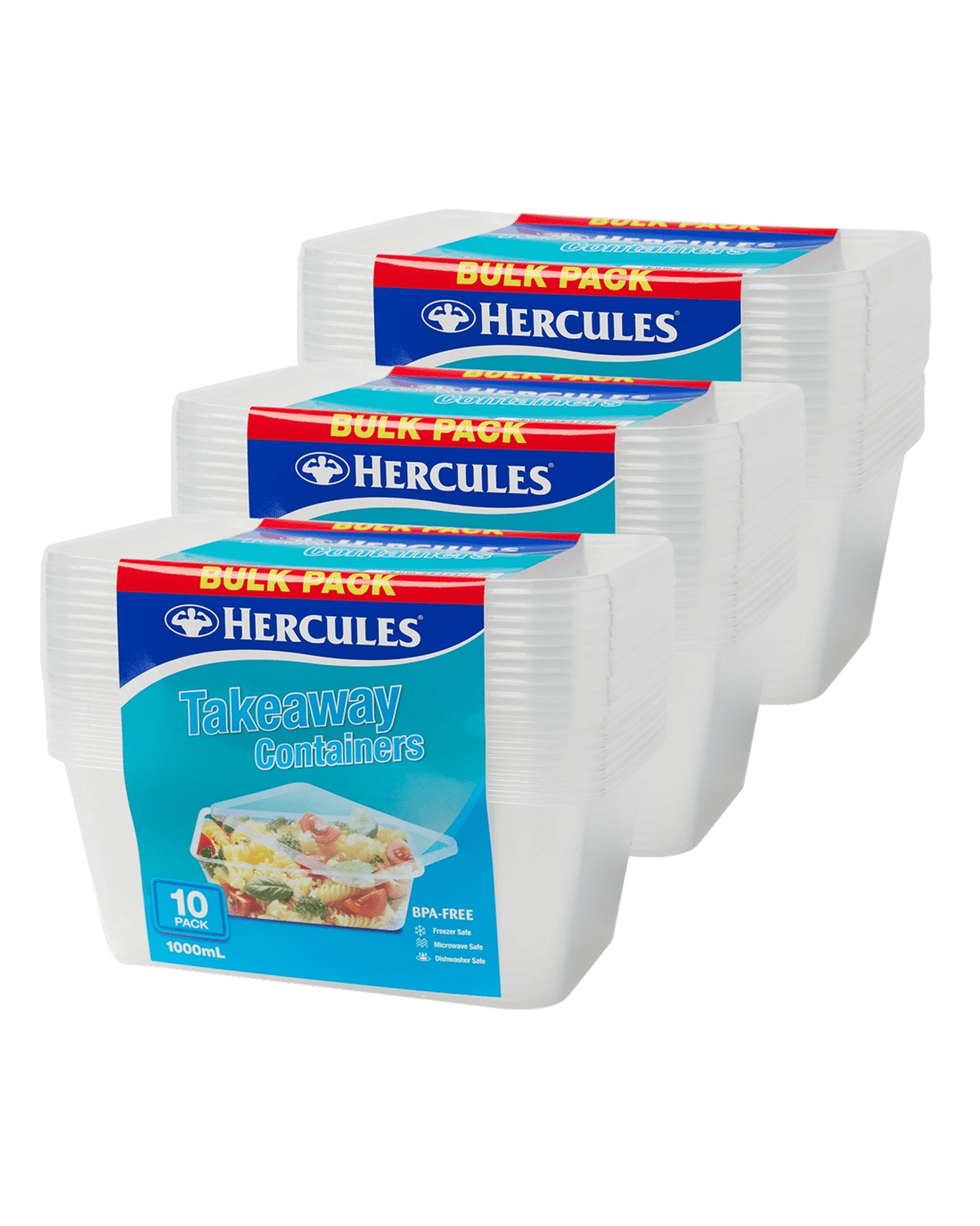 Hercules Takeaway Food Containers 10pk x 1000ml x3