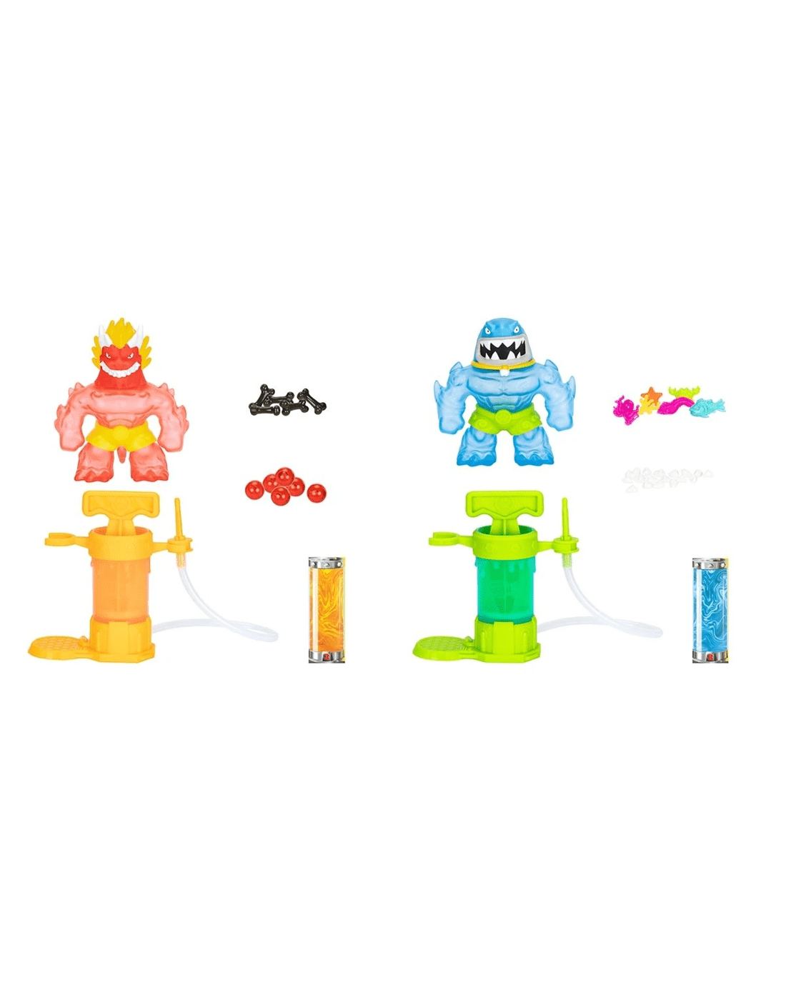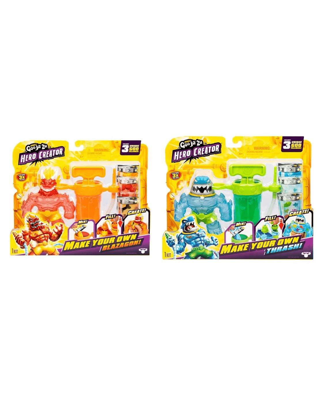 Introducing the New Heroes of Goo Jit Zu Hero Creator! For the very First Time, your child has the power to create their Own Heroes of Goo Jit Zu Action Figure! Attach either Blazagon or Thrash onto the special Creator Chamber and fill them with three unique fillings! Add water, pump the figure's body full of goo and watch as the Goo Jit Zu is brought to life! Remove the Goo Jit Zu from the hero creator and it's ready for stretchy, squishy action! Each character's body can be stretched up to three times its size, so make sure to unleash a Stretchy attack! Endless adventure awaits! Mix, Fill and Create again and again with the all-New Heroes of Goo Jit Zu Hero Creator.