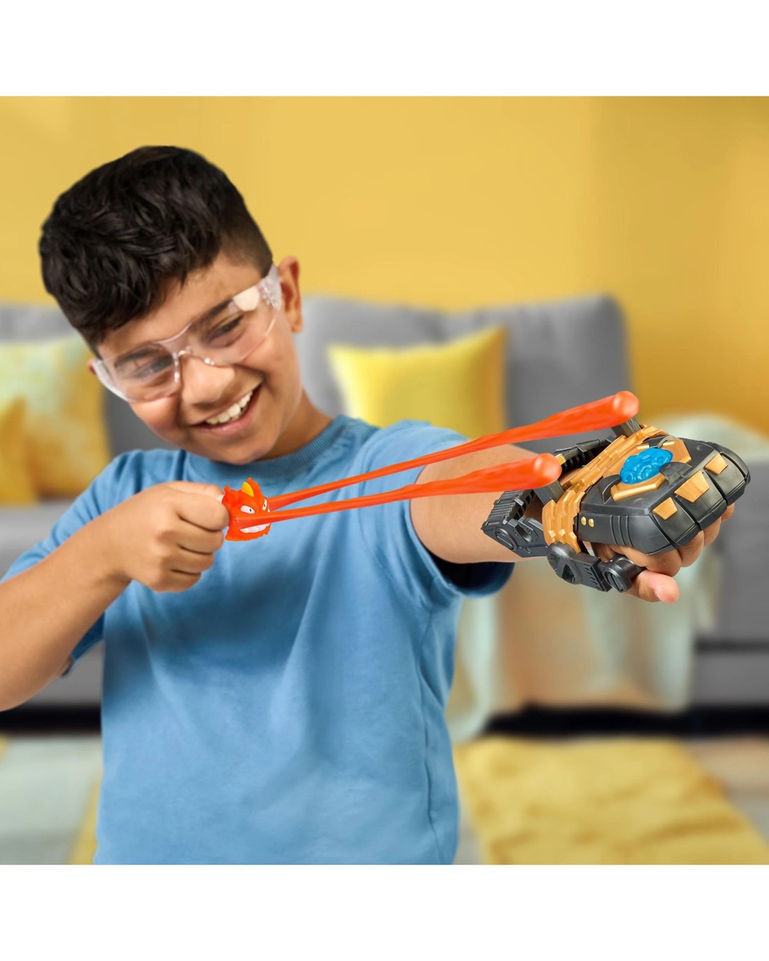 Get ready to stretch to the extreme! Load your Goo-Slingers into the Mega Launcher, stretch 'em out , and sling 'em sky-high into epic aerial battles! Watch the action unfold in brand-new episodes on YouTube. With Kenji's Mega Launcher, kids can send their favourite heroes—Flame Blazagon, Tidal Smash Thrash, and Lightning Pantaro—soaring into action, fueling their epic battles. With 31 heroes to collect (sold separately), the battle never ends! Stretch 'Em, Sling 'Em, Fly Sky-High with the new Mega Launcher! Ages 5 +