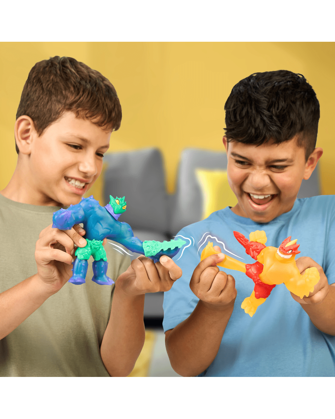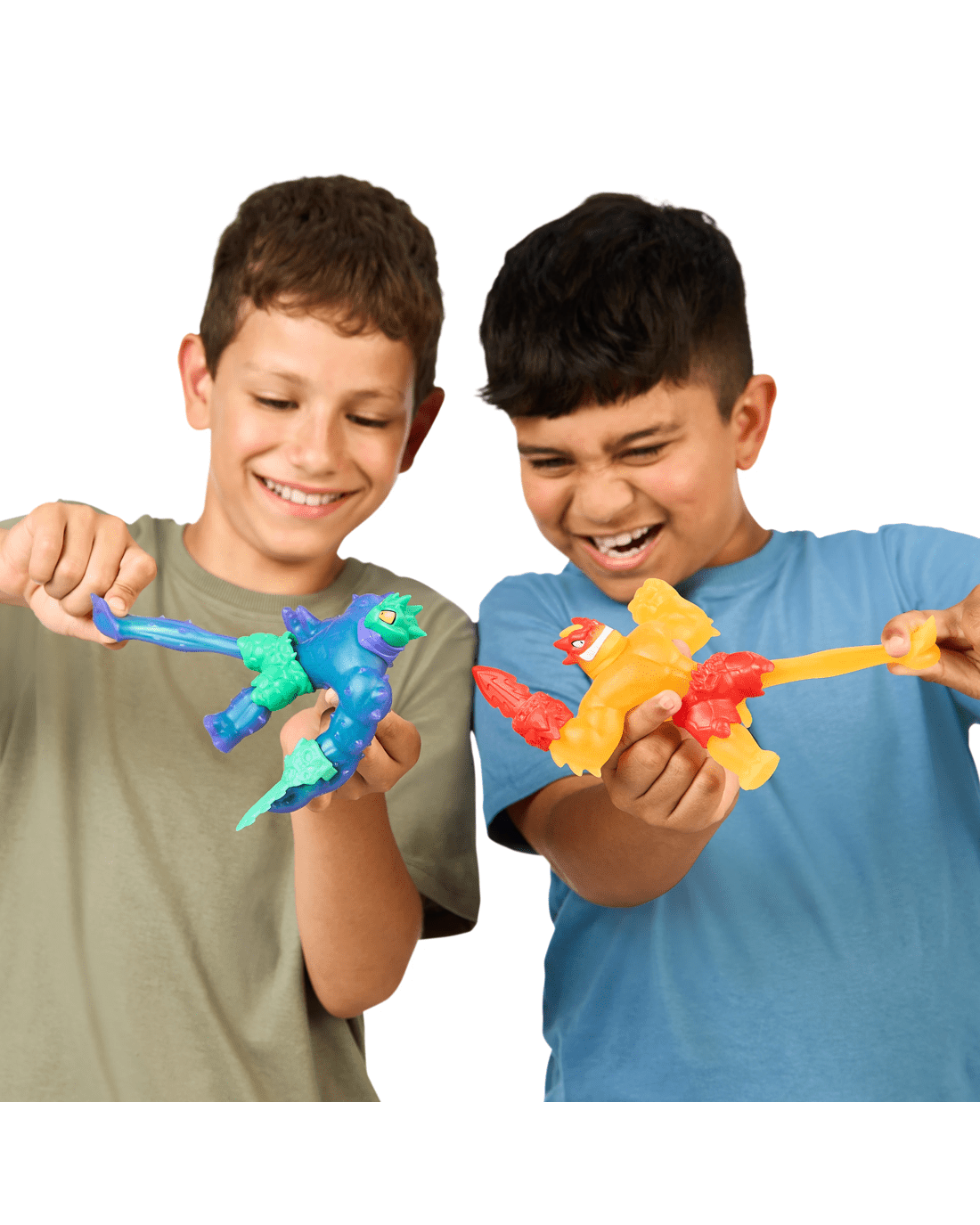 But will Cacticus’ spike saw and Sludgewing’s bat claw be too powerful? With bold styling and the ability to stretch up to three times their size, Meteor Madness Blazagon and Pantaro are ready to take action-packed adventure to the next level, unleashing stretchy, battle action havoc on evil! Beyond the Versus Packs, there are five more epic Meteor Madness Hero Pack figures to collect, each featuring a unique goo-filled core that kids will love to squish, twist and stretch! These include the Hero Pack Goo Crew — Blazagon, Jagooar, Thrash and the Ultra Rare Hero Rhinostone—as well as fearsome Villains, all gearing up for an all-out, meteor-powered clash of strength and skill. The Heroes of Goo Jit Zu Meteor Madness action figures are the ultimate toys for kids who love to stretch, smash and battle in the most extreme way possible! Get ready for next-level battles, extreme action and high-stretch excitement with the new Meteor Madness Versus Packs!