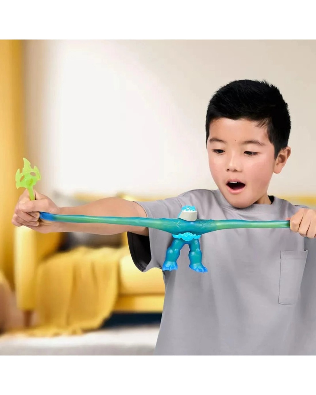 Let's kick some goo! The world is in danger, and only these heroes can save it. The Heroes of Goo Jit Zu Meteor Madness are back, and Battle Thrash is ready with his new meteor power weapon. Can he use his potent Power Trident to rain down on evil? Thrash is stretchy, squishy, and scrunchy... how will you let loose his action-packed moves? Battle Thrash is mischievous, witty, and he can stretch up to 3 times his size for action-packed adventures on a whole other level. There are 4 other Meteor Madness figures to collect: Battle Blazagon, Battle Cacticus, Shredz, and Ultra Rare Lava Rhinostone, each featuring a unique goo-filled core that kids will love to squish, twist, and stretch! (Other figures sold separately) Who will triumph in an all-out, meteor-powered clash of strength and skill? Get ready to stretch, squish, and save the day with the Heroes of Goo Jit Zu Meteor Madness action figures. Packed with next-level battles, world-saving action, and epic stretch power, the new Meteor Madness Battle Thrash takes playtime to the extreme! Ages: 4+
