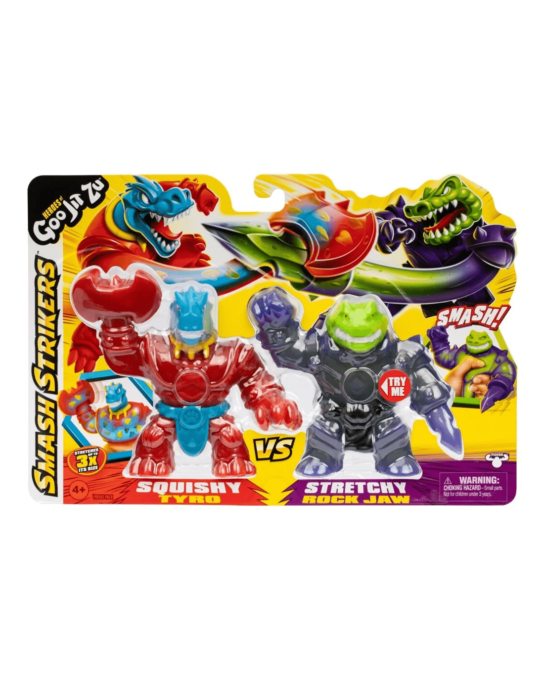 Stretch, squish, and Smash with Tyro and Rock Jaw to see who will emerge victorious in this Smash Attack Versus Pack! Collect all seven New Heroes of Goo Jit Zu Smash Strikers to experience the ultimate stretchy Smashing action.