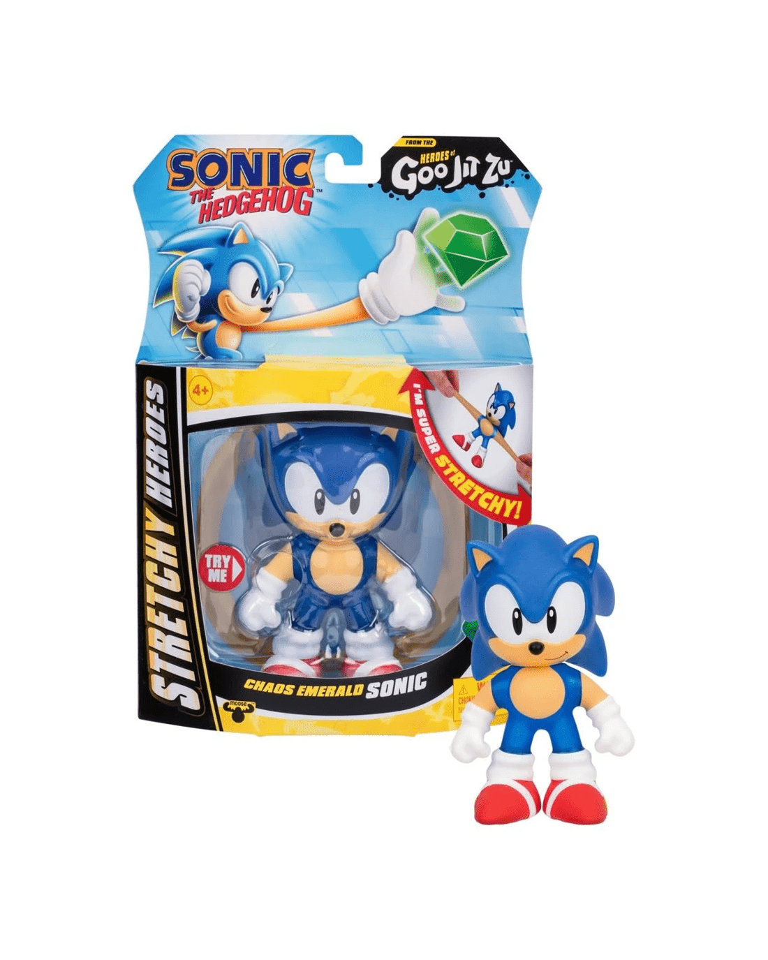 - Super stretchy: Kids can squish and stretch their Chaos Emerald Sonic Goo Jit Zu figure up to 3x its size! The best thing is that it will always return to its original shape