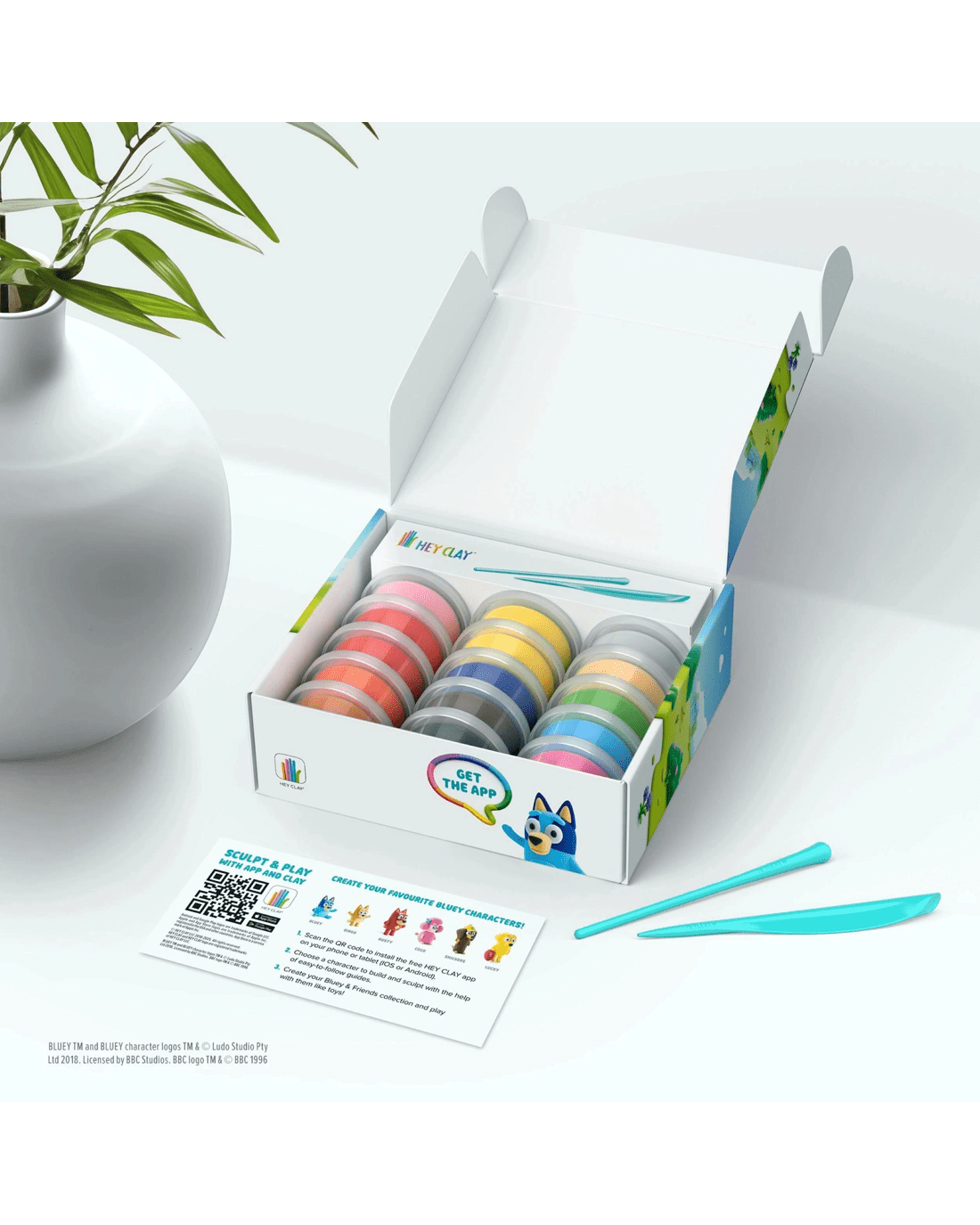 Step into the playful world of Bluey and her friends with this brilliant Hey Clay Bluey & Friends Set. Watch your child's creativity take shape as they mould their favourite characters, from imaginative Bingo to energetic Lucky. With 15 vibrant pots of air-dry clay and easy sculpting tools, little hands are set for hours of giggles and discovery. Ideal for youngsters aged three and up, the thoughtfully designed interactive app guides them through every step, ensuring brilliant results every time. Once the masterpieces dry, they become unique keepsakes to admire or share with friends. Give your child the joy of storytelling and creative play – open the box, press, pinch, and let the adventures begin!