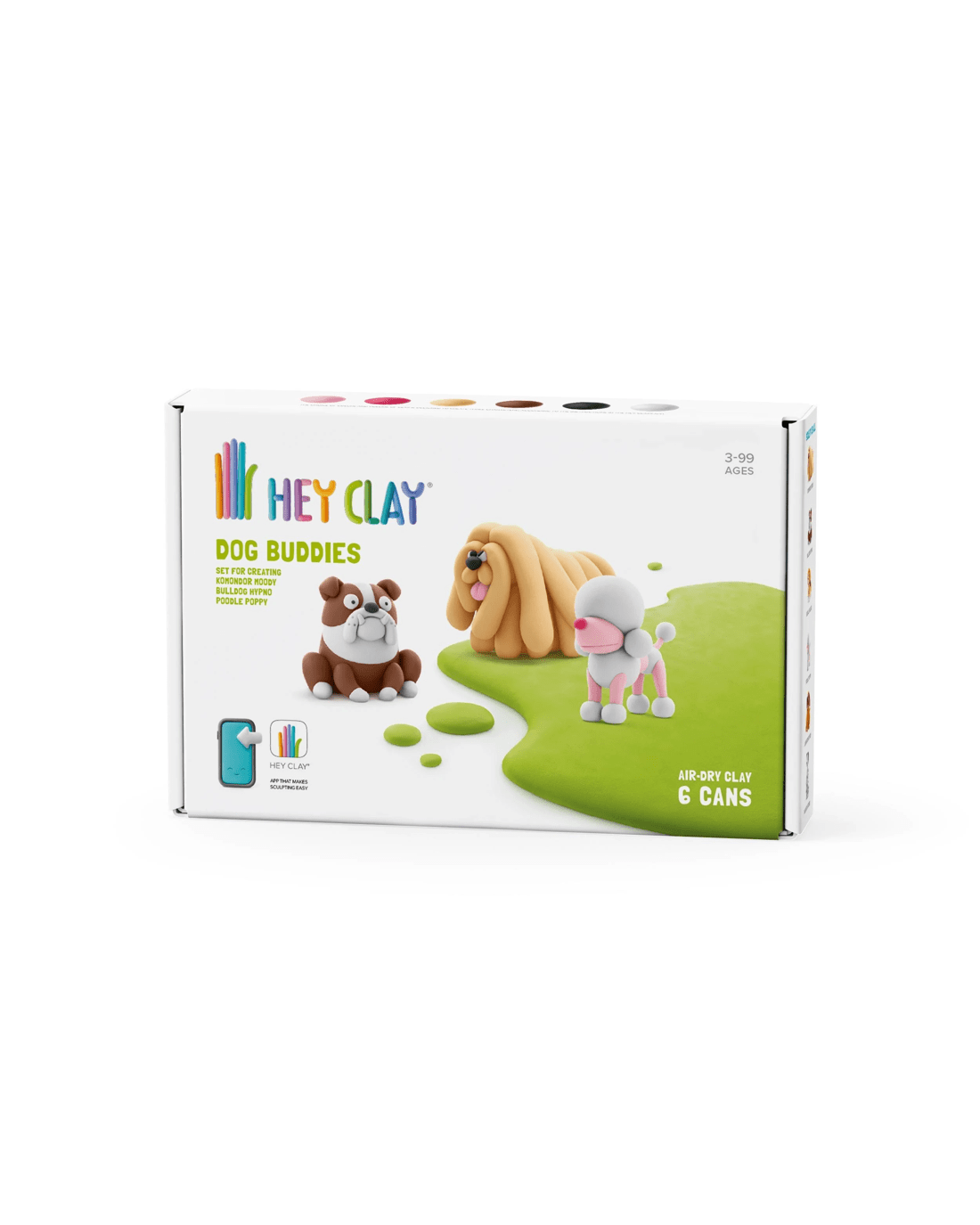 - Pack includes 6 cans of clay, enabling you to make 3 Dogs – Poppy the Poodle, Hypno the Bulldog & Moody the Komondor
