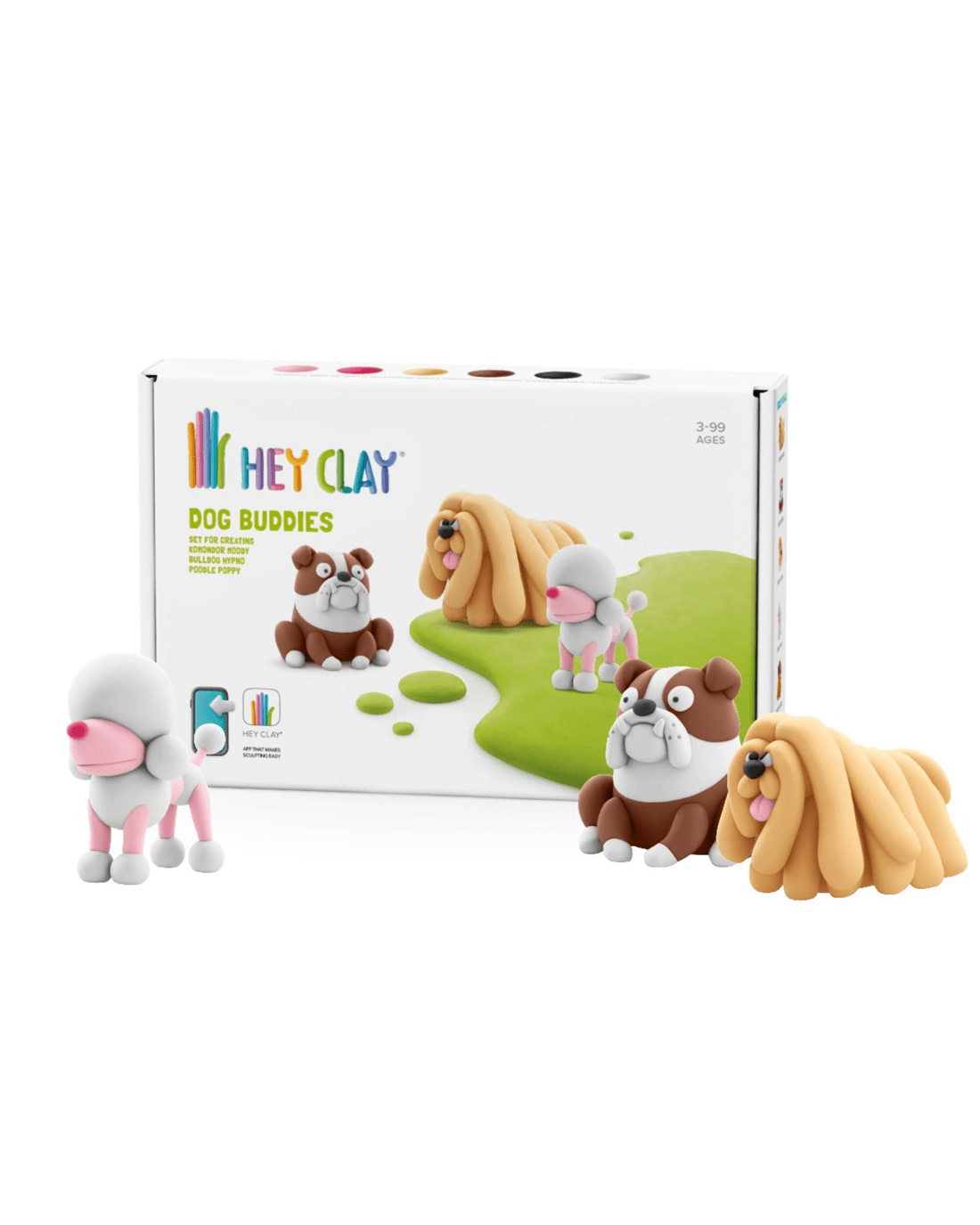 - Pack includes 6 cans of clay, enabling you to make 3 Dogs – Poppy the Poodle, Hypno the Bulldog & Moody the Komondor