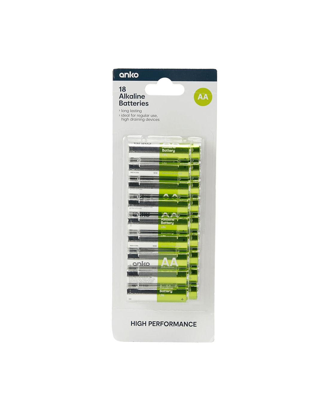 - Includes 18 x AA 1.5V high performance alkaline batteries