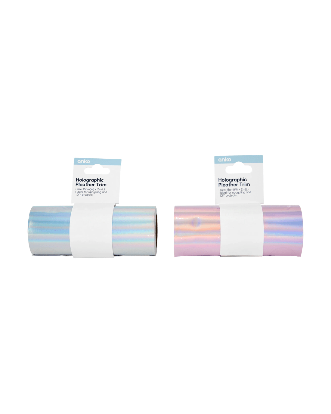 Add a bold, shiny touch to your projects with the Holographic Pleather Trim Roll - perfect for enhancing clothing, accessories and craft creations with a unique, eye-catching flair.