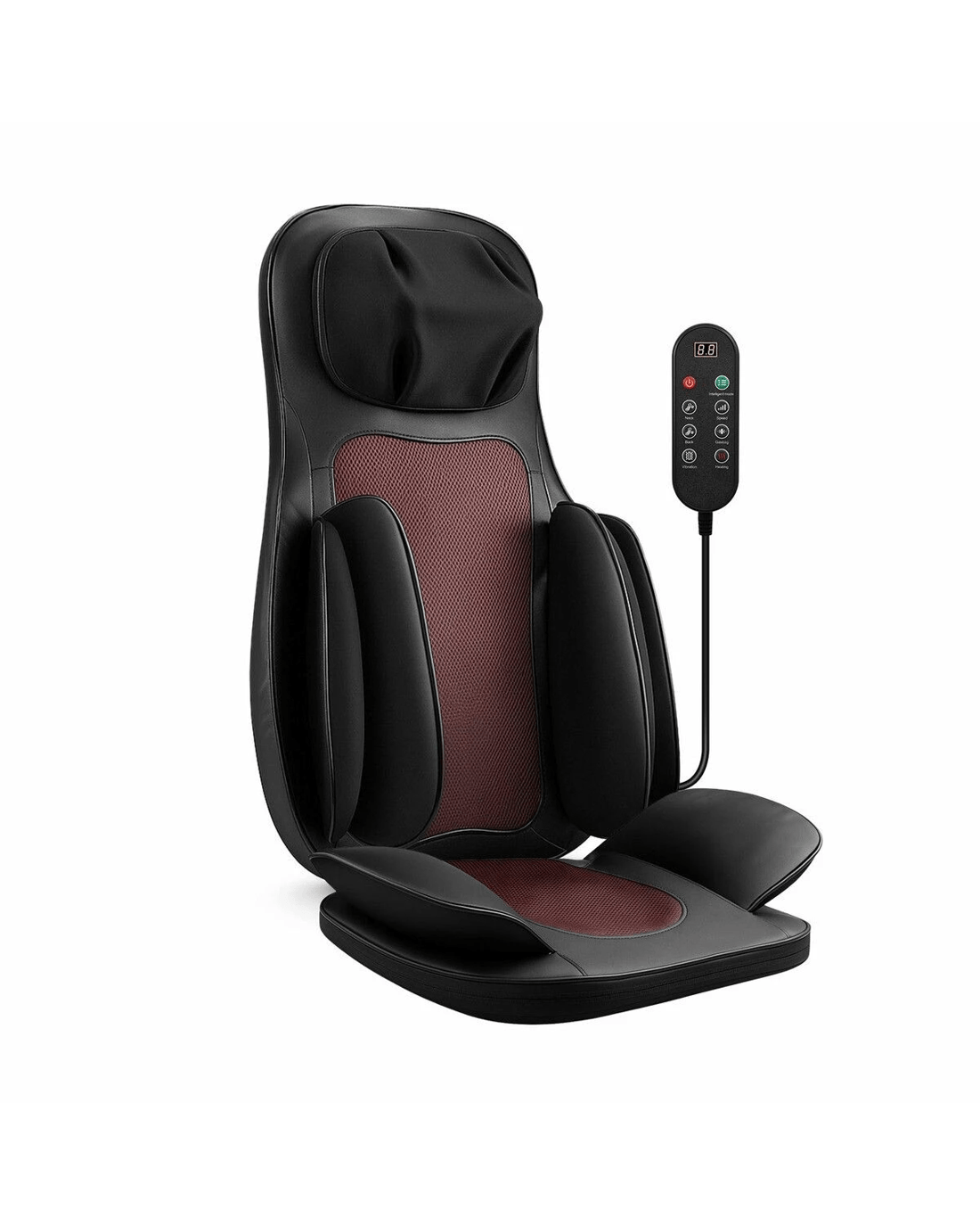 Make your life more relaxed and better with our full-body massage chair cushion. Lean back and let the specialised kneading nodes work on your neck, melting away stubborn tension exactly where you need it most with no adjustments required. And authentic Shiatsu rollers glide smoothly up and down your back, mimicking the hands of a professional therapist to release tight muscles, while soothing warmth envelops you. Then, gentle airbags hug your waist and seat in a calming squeeze, and subtle vibrations ease fatigue from hours of sitting. Thanks to its intuitive remote, you can customise the intensity from soft, soothing relief to deep, invigorating kneading. With an auto 15-minute massage, you'll feel recharged and recentered, making it easy to weave restorative moments into your busiest days. Perfect for your home, office, or even on the go, this massage cushion brings daily comfort within easy reach.