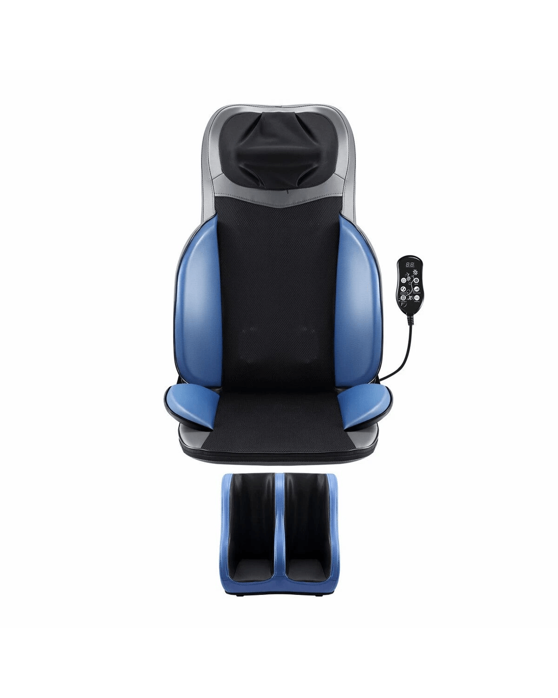 Whether at home or in the office, the Homasa massage cushion offers a rejuvenating massage experience tailored to your needs. Constructed using high-grade PU leather and ABS materials, our seat massager offers a comprehensive full-body massage from neck to buttocks. Additionally, it features the deep-kneading Shiatsu massage technique for the neck and back, as well as two sets of massage heads to loosen up the back. Enhance your massage experience with the heating and vibrating functions, relaxing your back, thighs, and hips. Thanks to its speed-adjustable foot massager with a heating function, you can enjoy Shiatsu massage in the cosy comfort for your feet. With the handheld remote control, you can easily customise your massage settings for a personalised experience. It also features a 15-minute auto shut-off function for safety and convenience.