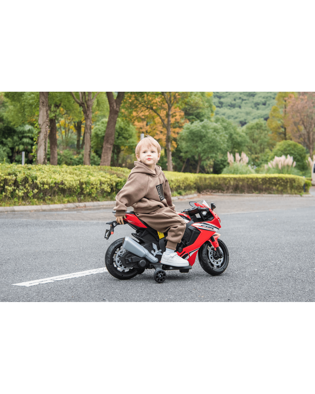 Bring a buzz of excitement to your child's day with the Honda CBR 1000 12V ride-on motorbike, designed to resemble a true sports bike. This motorbike features bright working lights, lively sounds, and user-friendly controls that make every ride thrilling and straightforward. With the support of training wheels, young riders can discover new levels of confidence and enjoyment as they set off on their own little adventures. Parents will love the simple assembly, making it easy to get started quickly. Give your youngster the chance to experience the thrill of their very first ride—set them up on a path to fun-filled journeys with this eye-catching ride-on motorbike.
