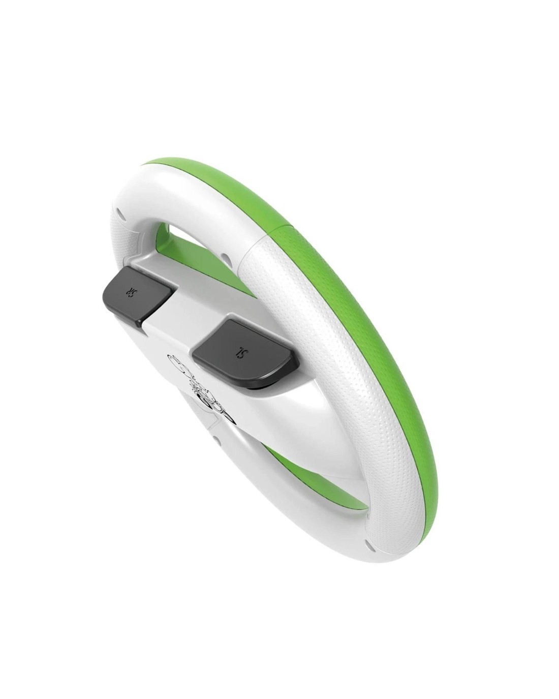 Start your engines and get ready to zip through the Mario Kart World courses with the HORI Mario Kart Racing Wheel Attachment (Yoshi). Simply pop your Nintendo Switch™ 2 Joy-Con™ 2 or Nintendo Switch™ Joy-Con™ controller (each sold separately) into the racing wheel attachment and enjoy the lightweight feel and textured grips. Featuring responsive shoulder buttons for easy controls and game immersion. Officially Licensed by Nintendo®.