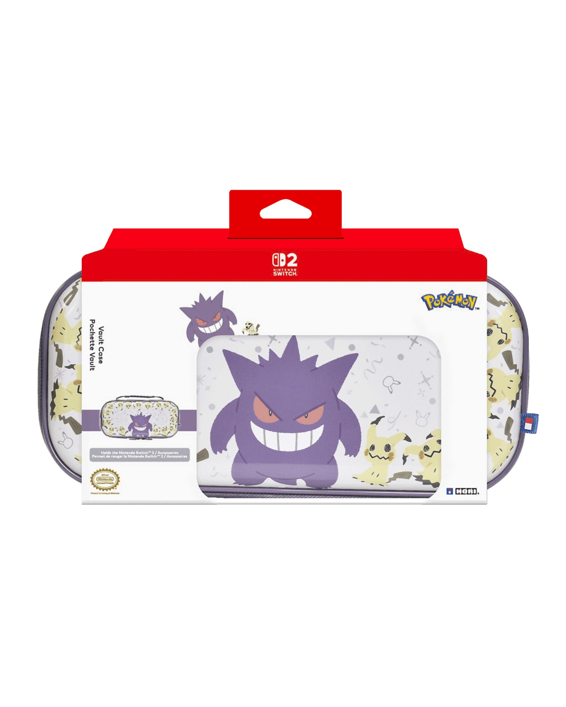 Take your gaming on the move with the Hori Vault Case featuring Gengar and Mimikyu for Nintendo Switch 2. Playful Pokémon-themed patterns brighten your travels, while the firm front cover and soft lining keep your console safe from daily bumps and marks. With a clever internal layout, your Switch 2 remains held securely, and the internal flap both shields your screen and stores up to 10 game cards for quick access. An added mesh pouch is perfect for keeping small accessories organised. Whether you’re at home or away, enjoy peace of mind and a dash of fun with this official Nintendo and Pokémon accessory.Features
