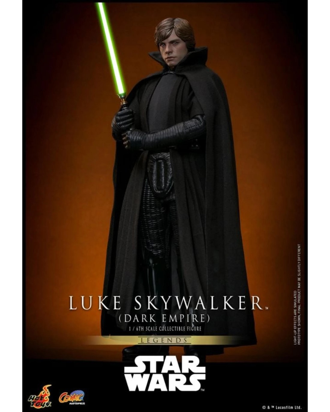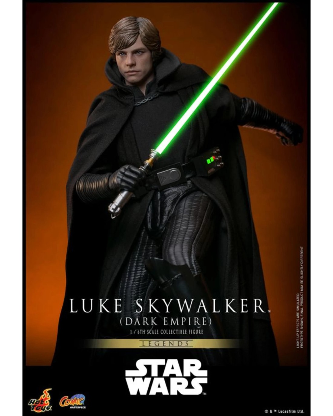 After the Battle of Endor, the fight for freedom rages on. Darth Vader is dead, but a reborn Empire - under a mysterious new leader - strikes back at the struggling Rebel Alliance. Massive World Devastators, more powerful and unstoppable than the Death Star, ravage entire planets, while the ruthless heirs of Jabba the Hutt place a monumental price on the heads of Princess Leia and her husband, Han Solo. But their greatest foe may be their closest friend: Luke Skywalker...The highly-detailed Luke Skywalker collectible figure features a meticulously developed head sculpt with striking likeness and rolling eyeball function allowing positionable eye line, finely tailored armored suit inspired by the Dark Empire legend, LightsabersTM with LED light-up function, and a display base!