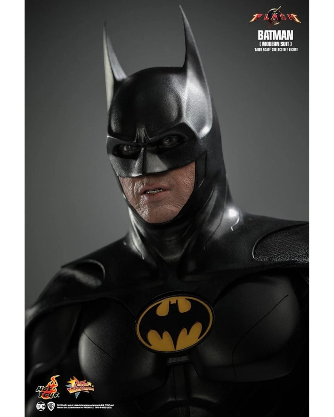 - Authentic and detailed likeness of Michael Keaton as Batman in Modern Suit from The Flash movie