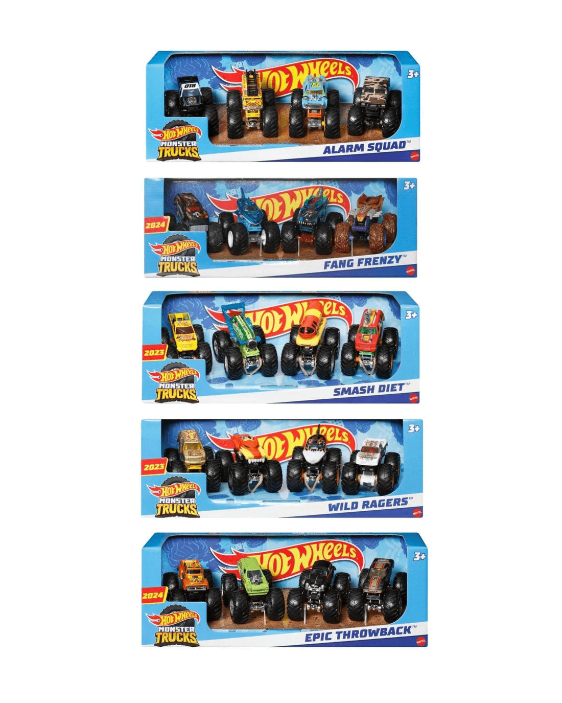 - Each 1:64 scale toy truck is the perfect size for taking the smashing fun anywhere, and with an exclusive Monster Truck in each 4-pack, kids and collectors will want them all. (Each 4-pack sold separately, subject to availability.)
