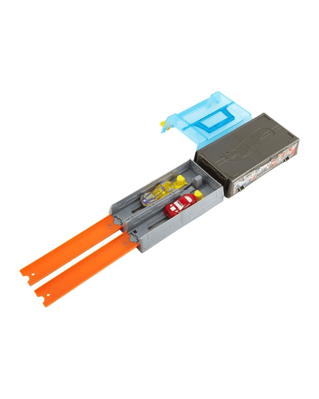 • The Hot Wheels Race Case Track Set holds the basic elements for any Hot Wheels race: 2 launchers, 2 track pieces and 2 Hot Wheels cars.