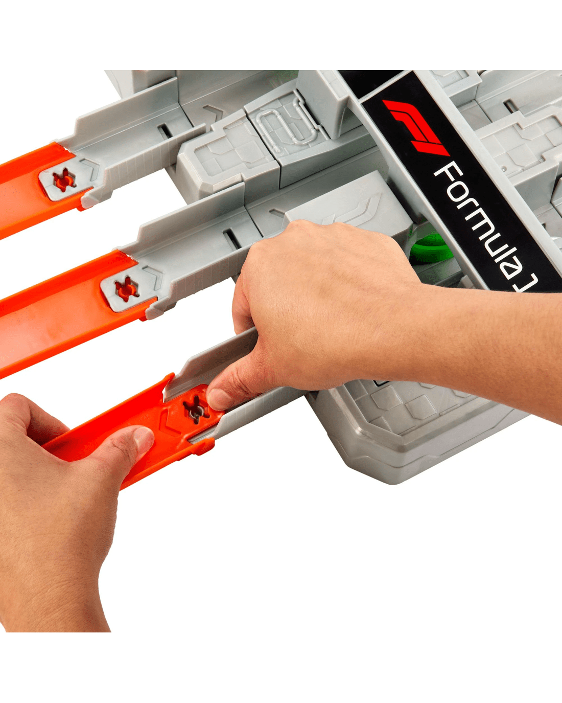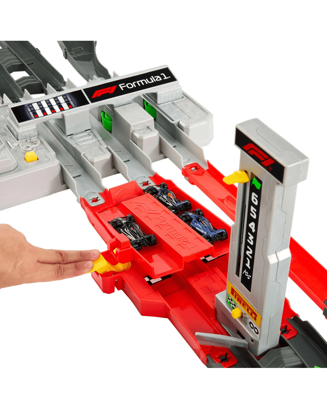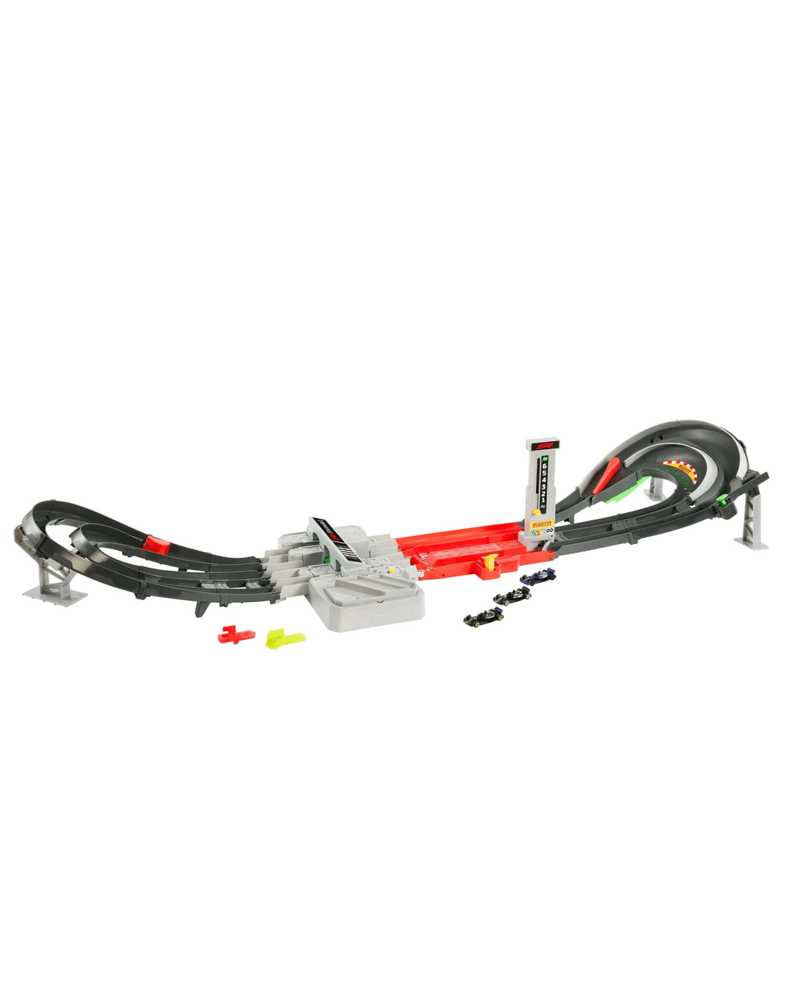 • Speed into the world of Formula 1 racing with the Hot Wheels Racing Formula 1 Grand Prix Circuit Track Set