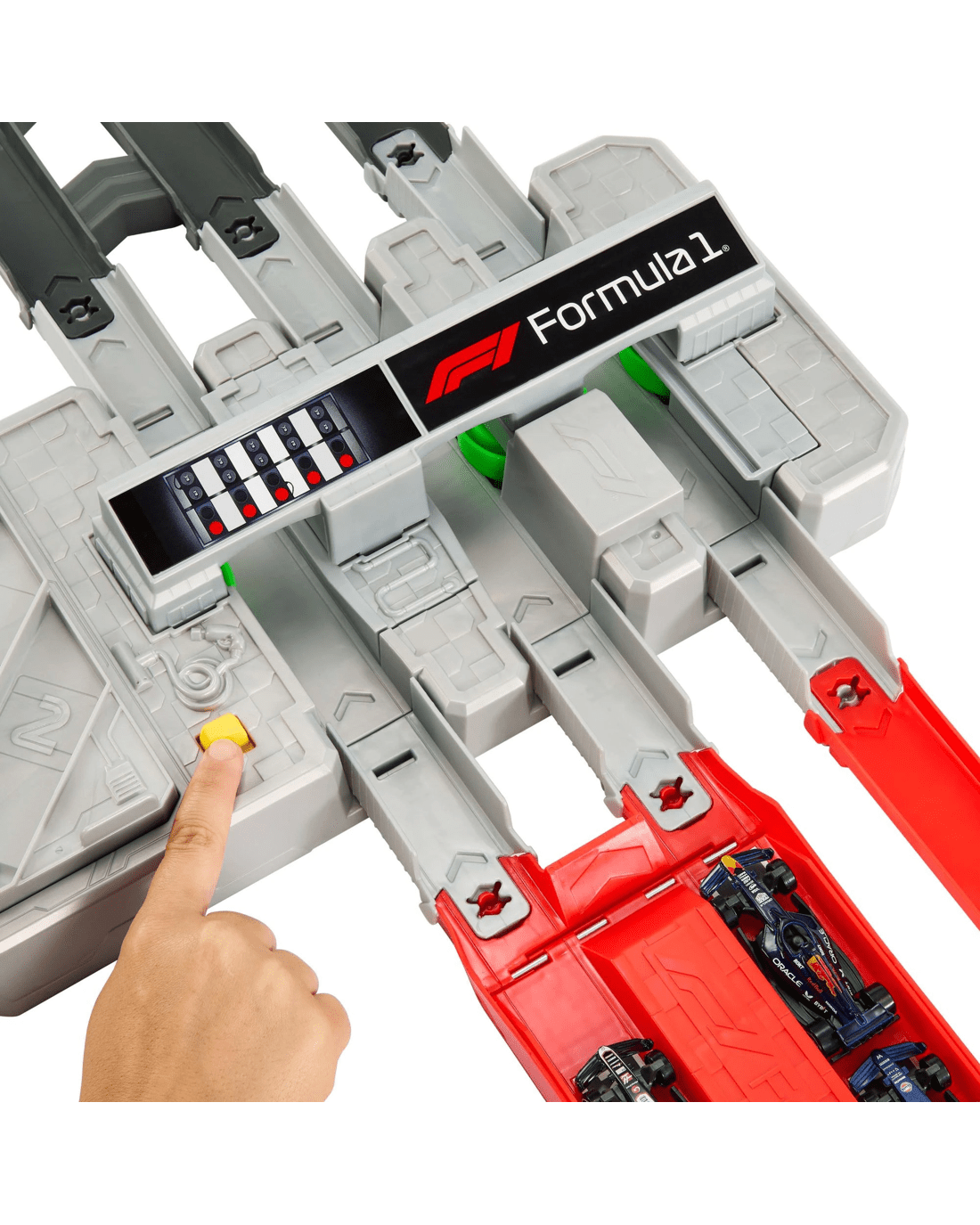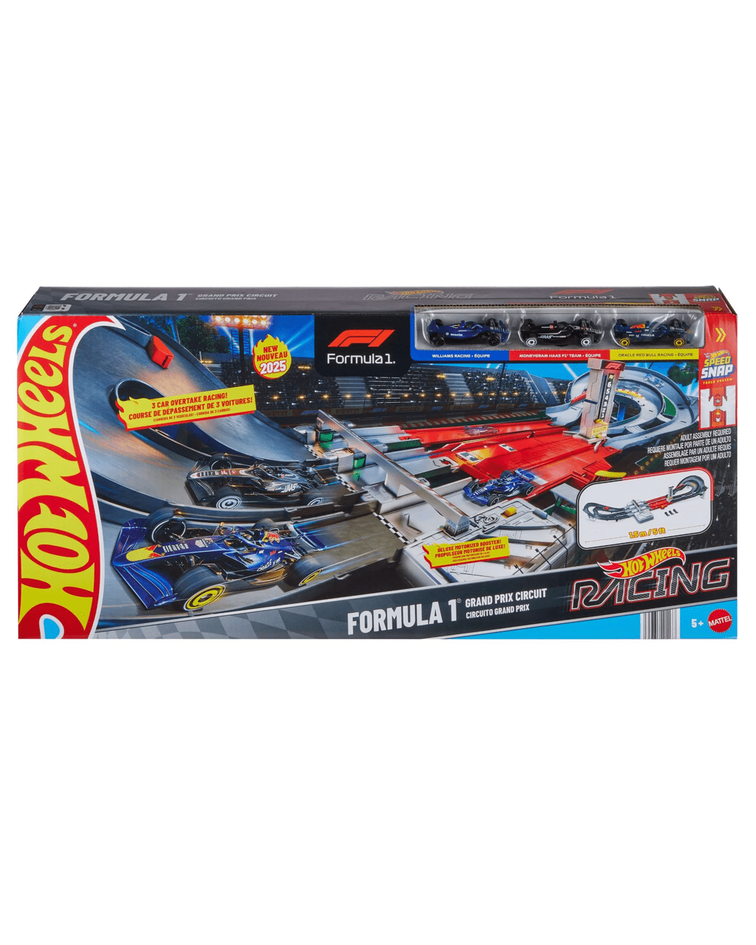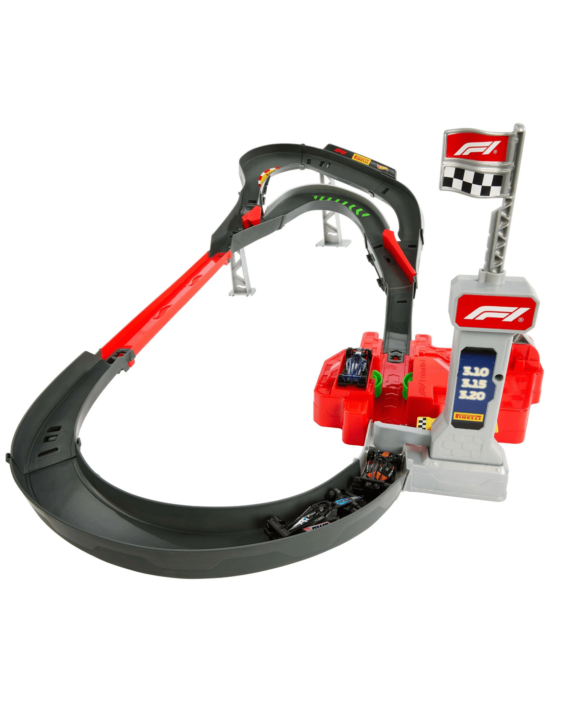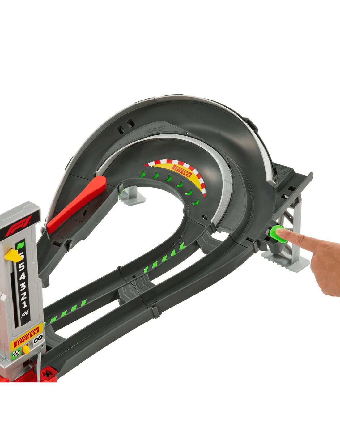 • Speed into the world of Formula 1 racing with the Hot Wheels Racing Formula 1 Grand Prix Circuit Track Set