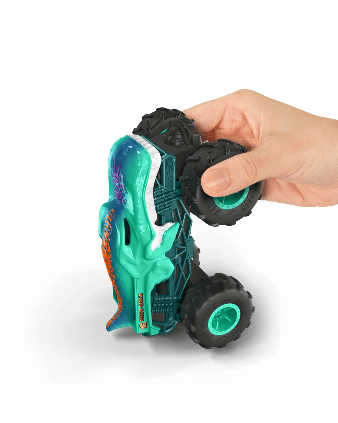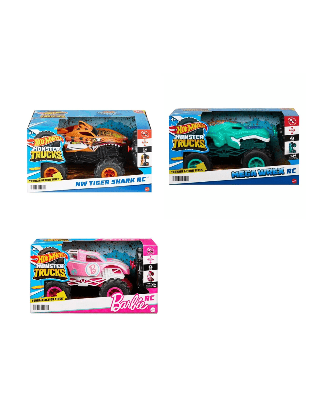 - Drive into the action with Hot Wheels RC Monster Trucks 1:24 scale a remote-control toy truck that brings the smashing and crashing home.