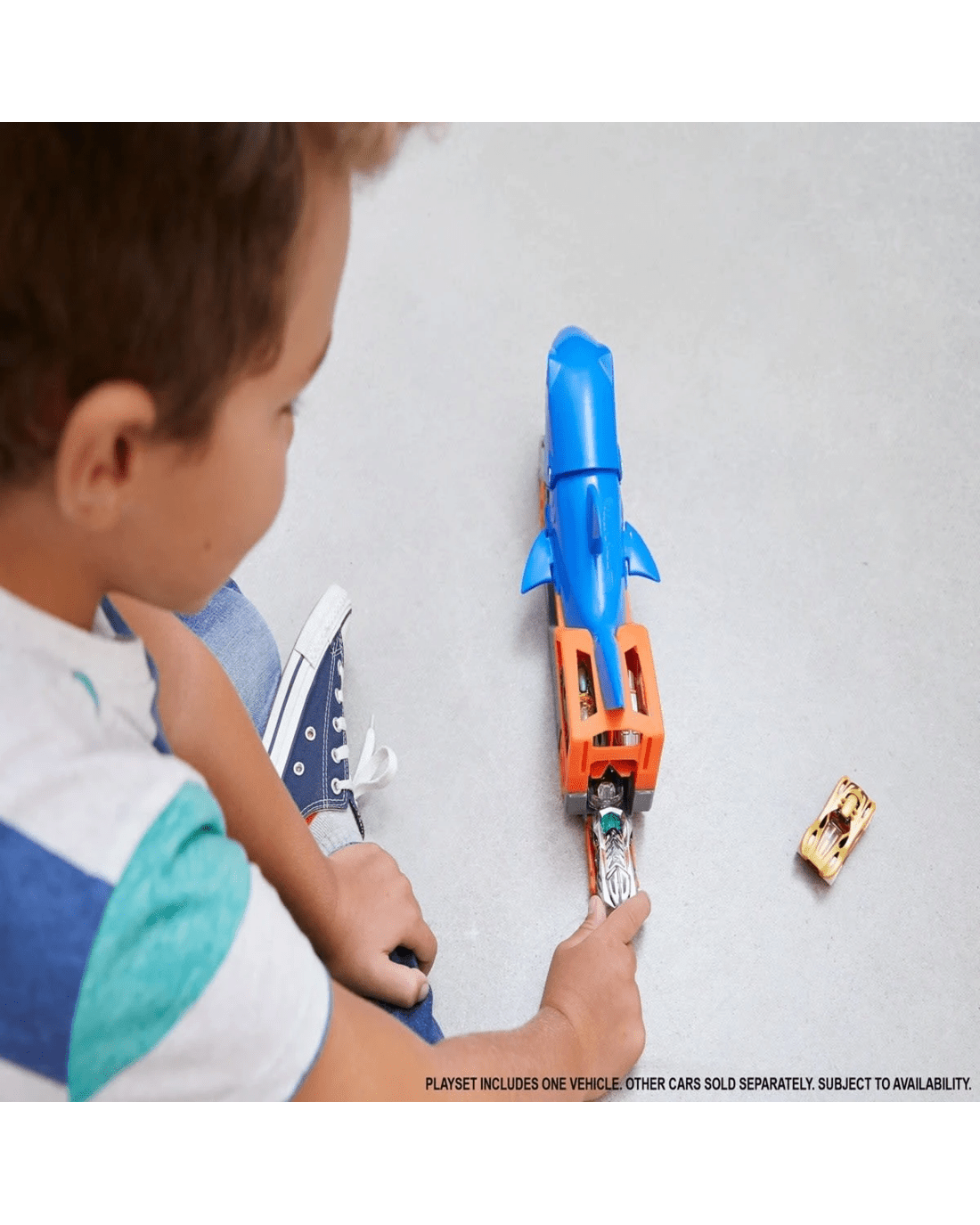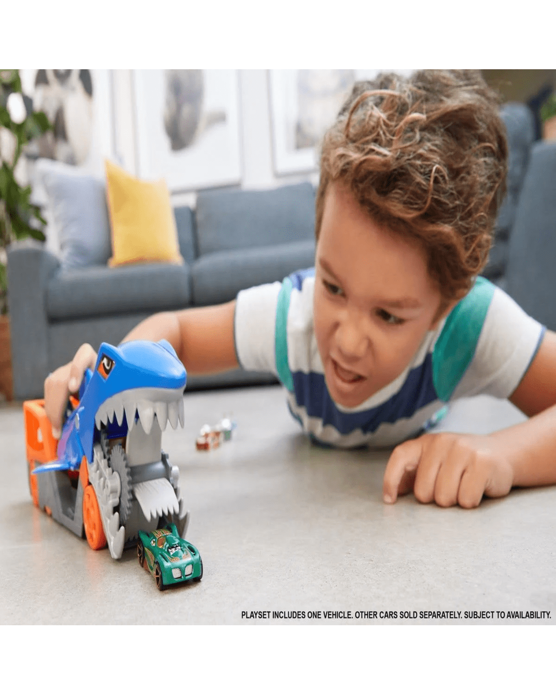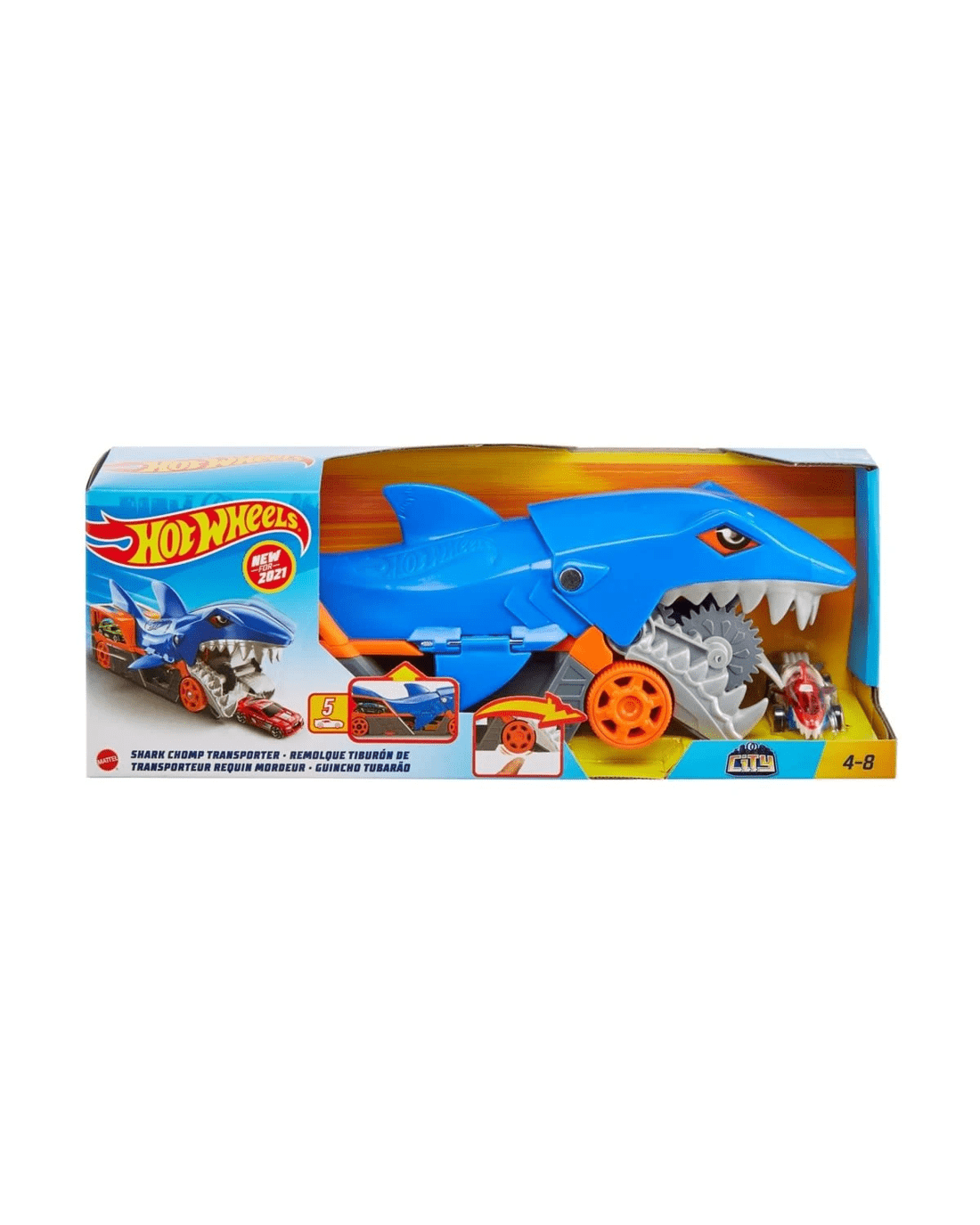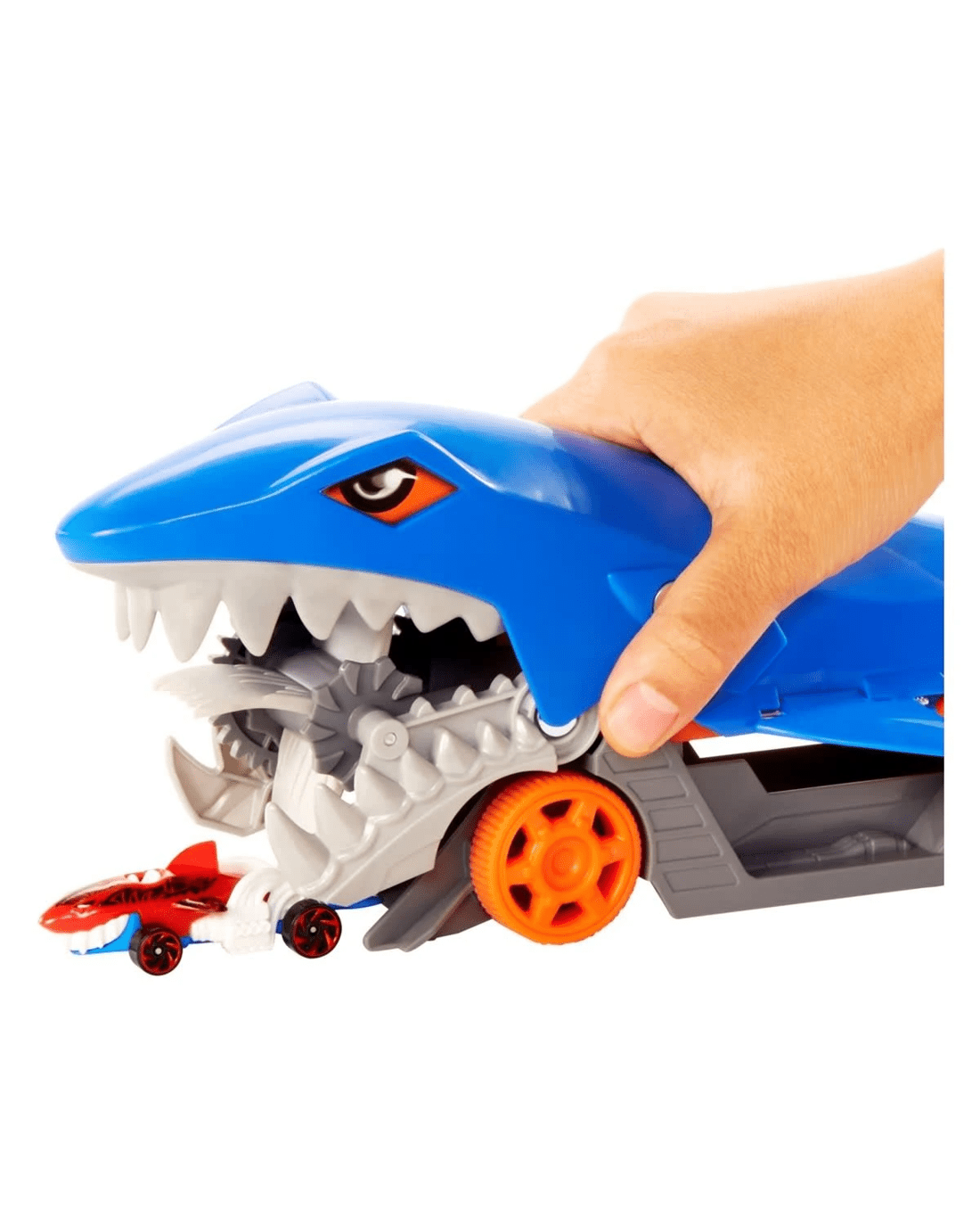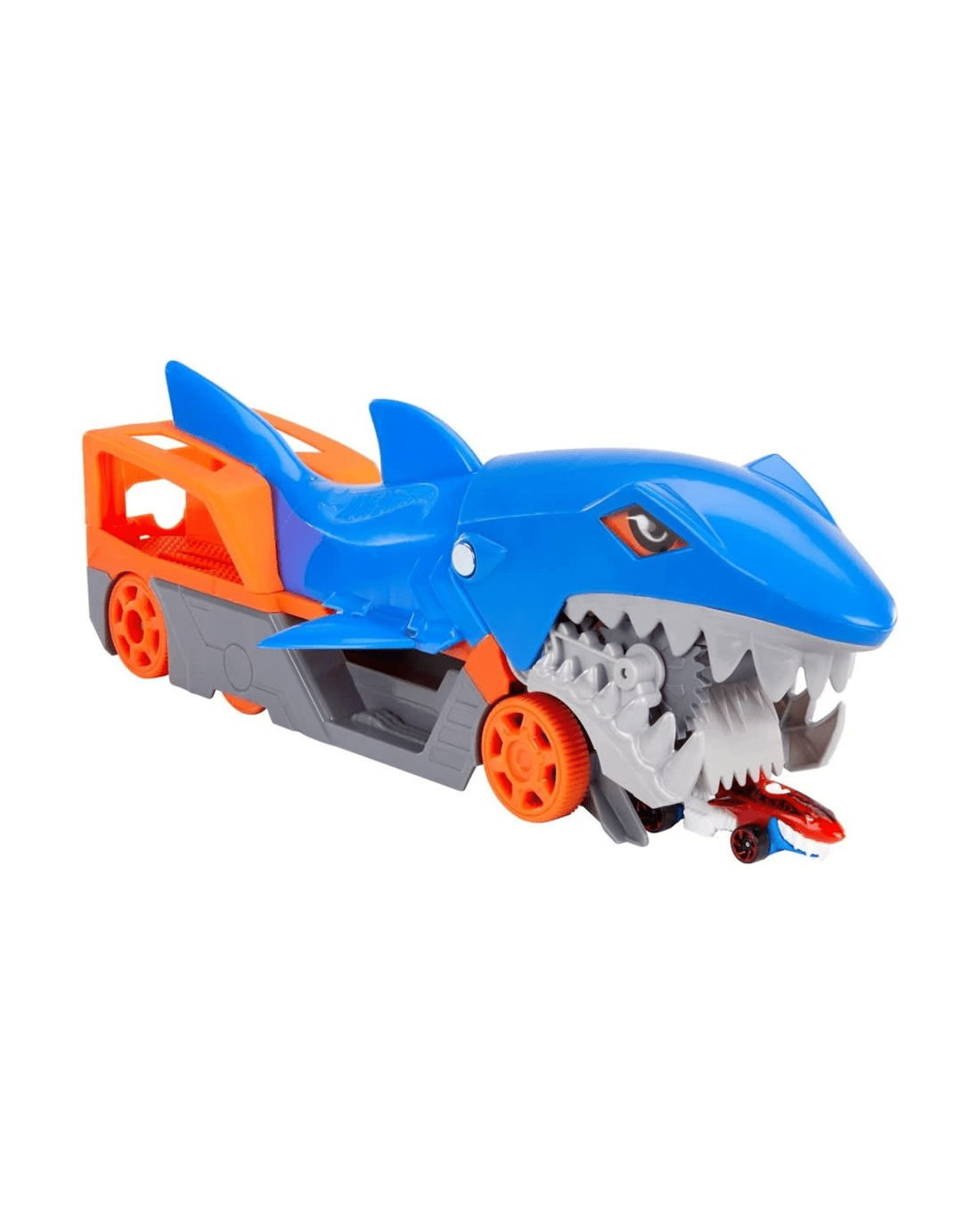 - Includes The Hot Wheels Shark Chomp Transport vehicle and 1 x 1:64 scale Hot Wheels car