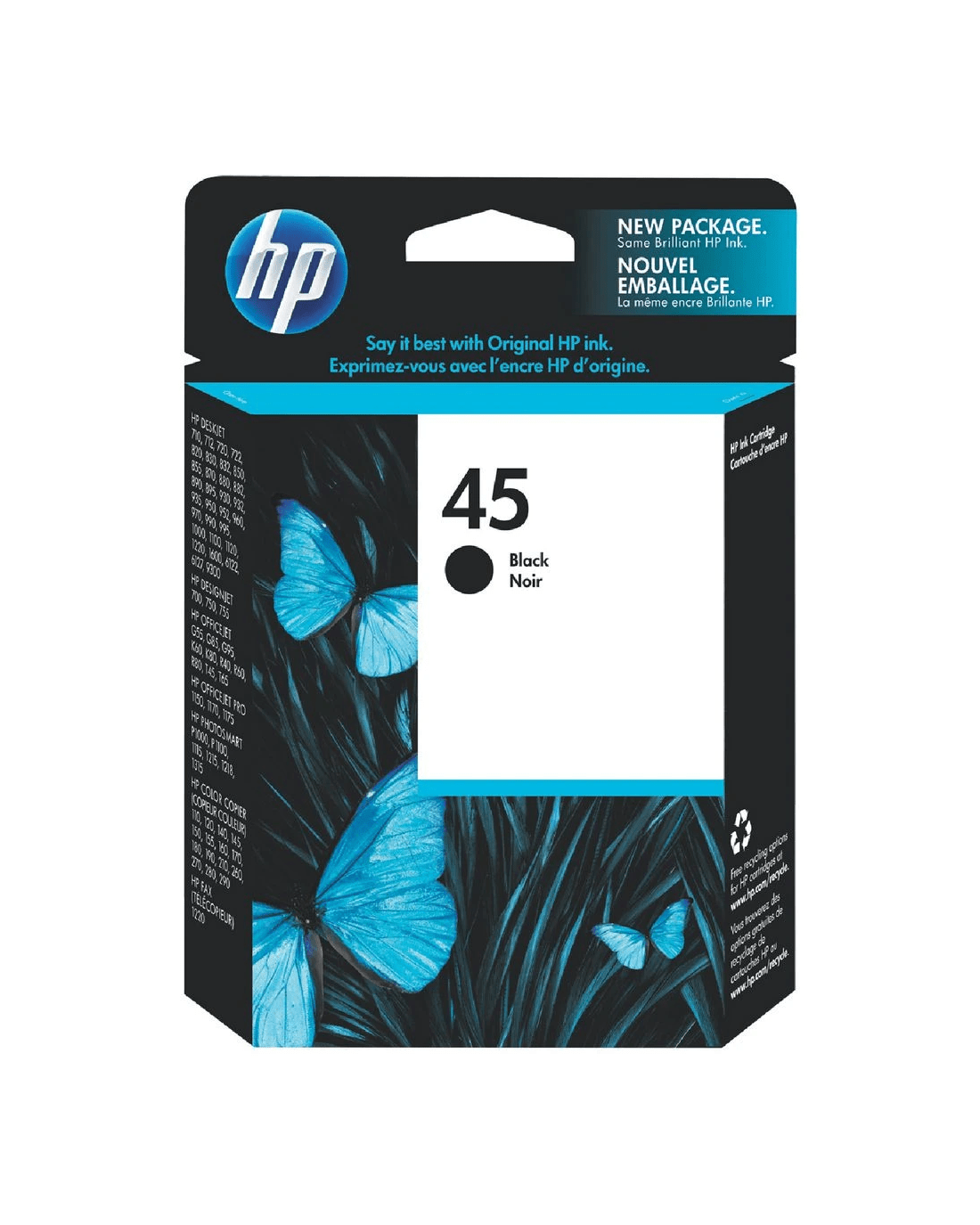 This HP 45 Ink Cartridge will help you to achieve high quality printouts at home or in the workplace. The ink has been designed to deliver photo quality images and clear, bold text.