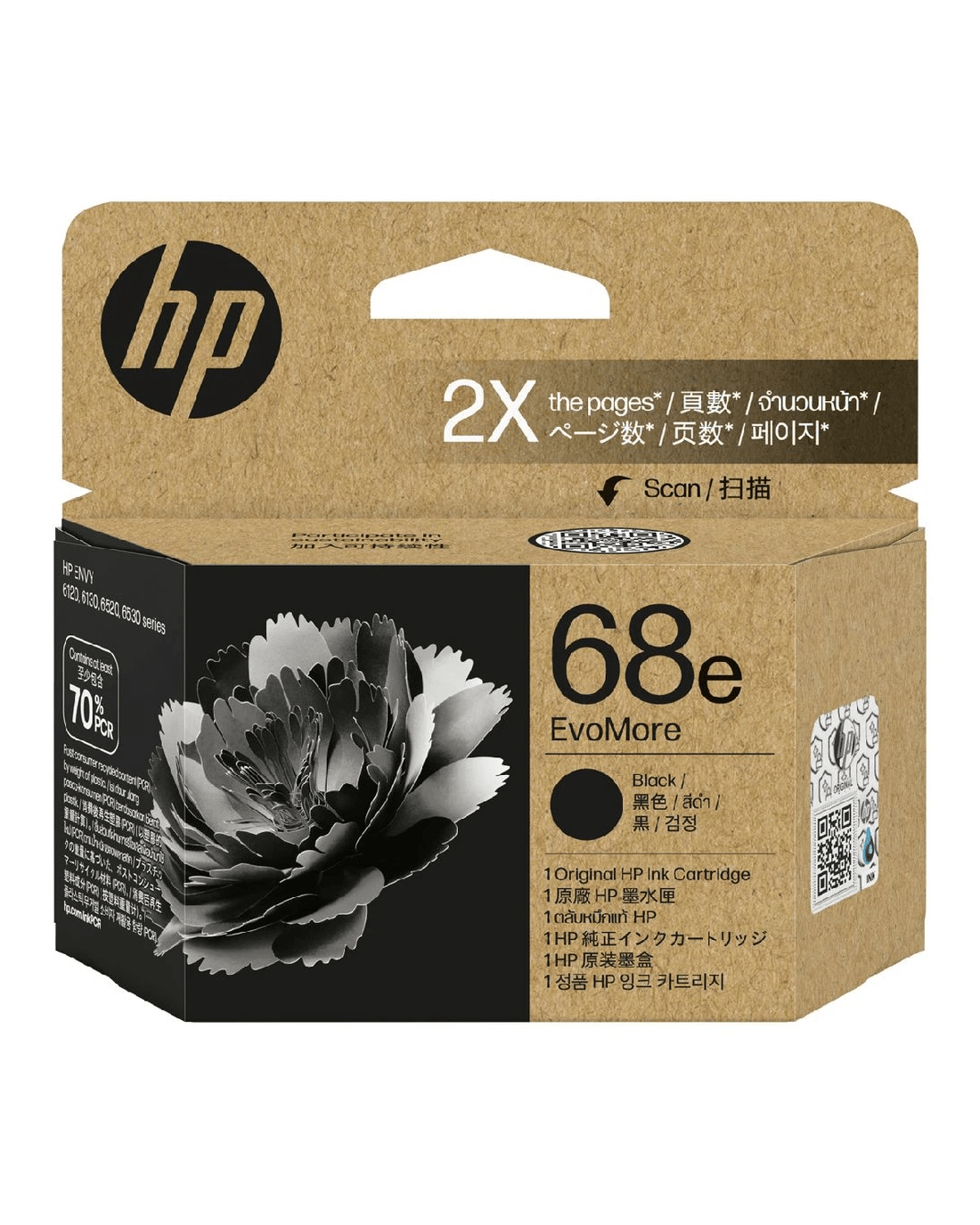 This HP 68 EvoMore Original Ink Cartridge provides reliable printing and consistent results. Print more pages, then highlight your documents with confidence thanks to updated black ink with better resistance to highlighter smears.