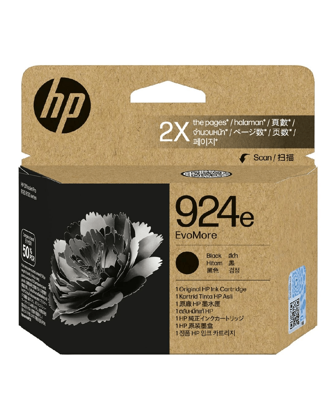 Experience professional-quality documents every print with this HP 924e EvoMore Ink Cartridge. EvoMore ink cartridges are designed to print 2x the pages of standard ink cartridges.