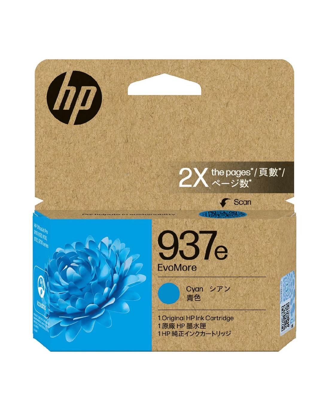 Experience professional-quality documents every print with this HP 937e EvoMore Ink Cartridge. EvoMore ink cartridges are designed to print 2x the pages of standard ink cartridges.