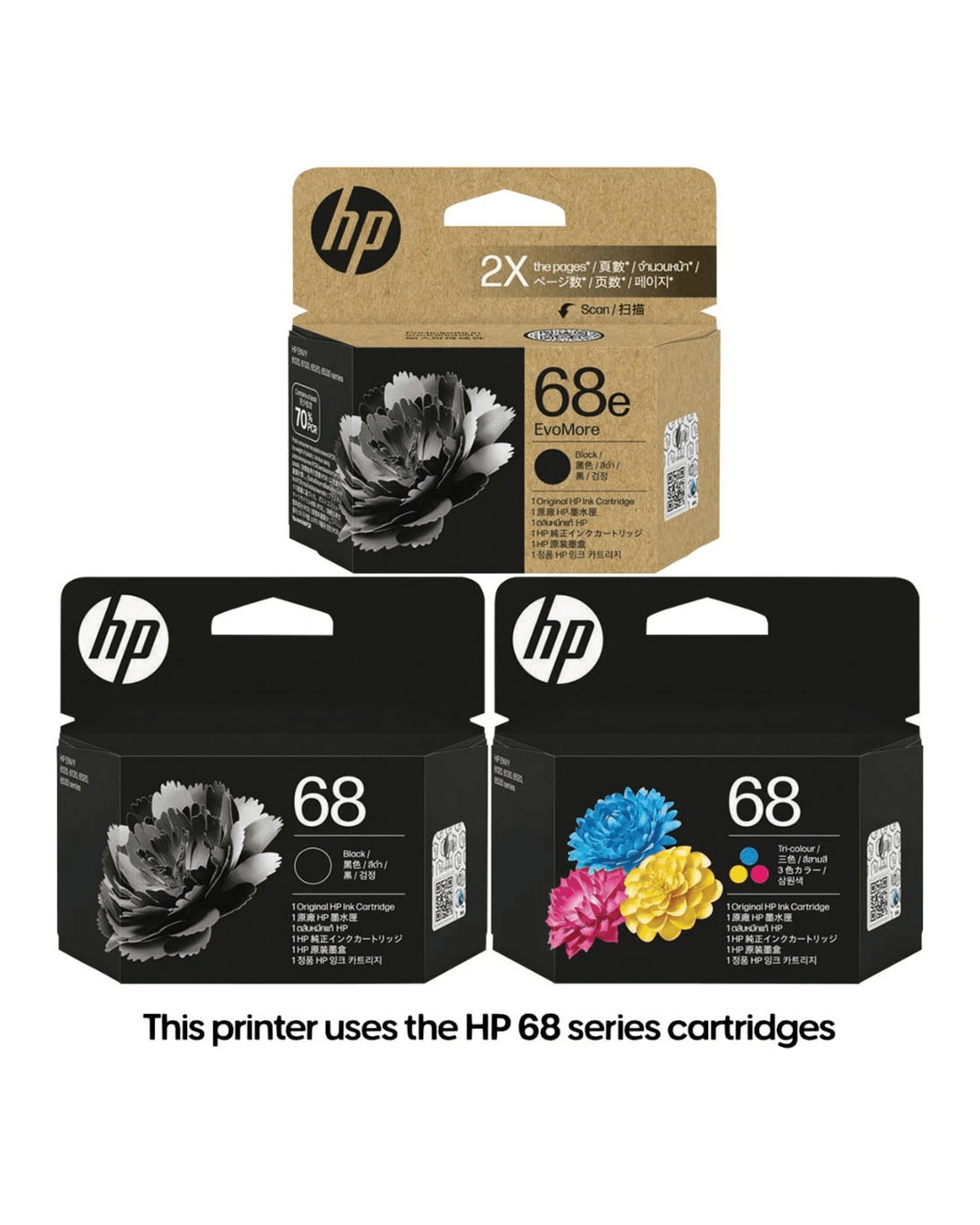 - This printer supports HP 68, HP 68e, HP 308, and HP 308e ink cartridges.