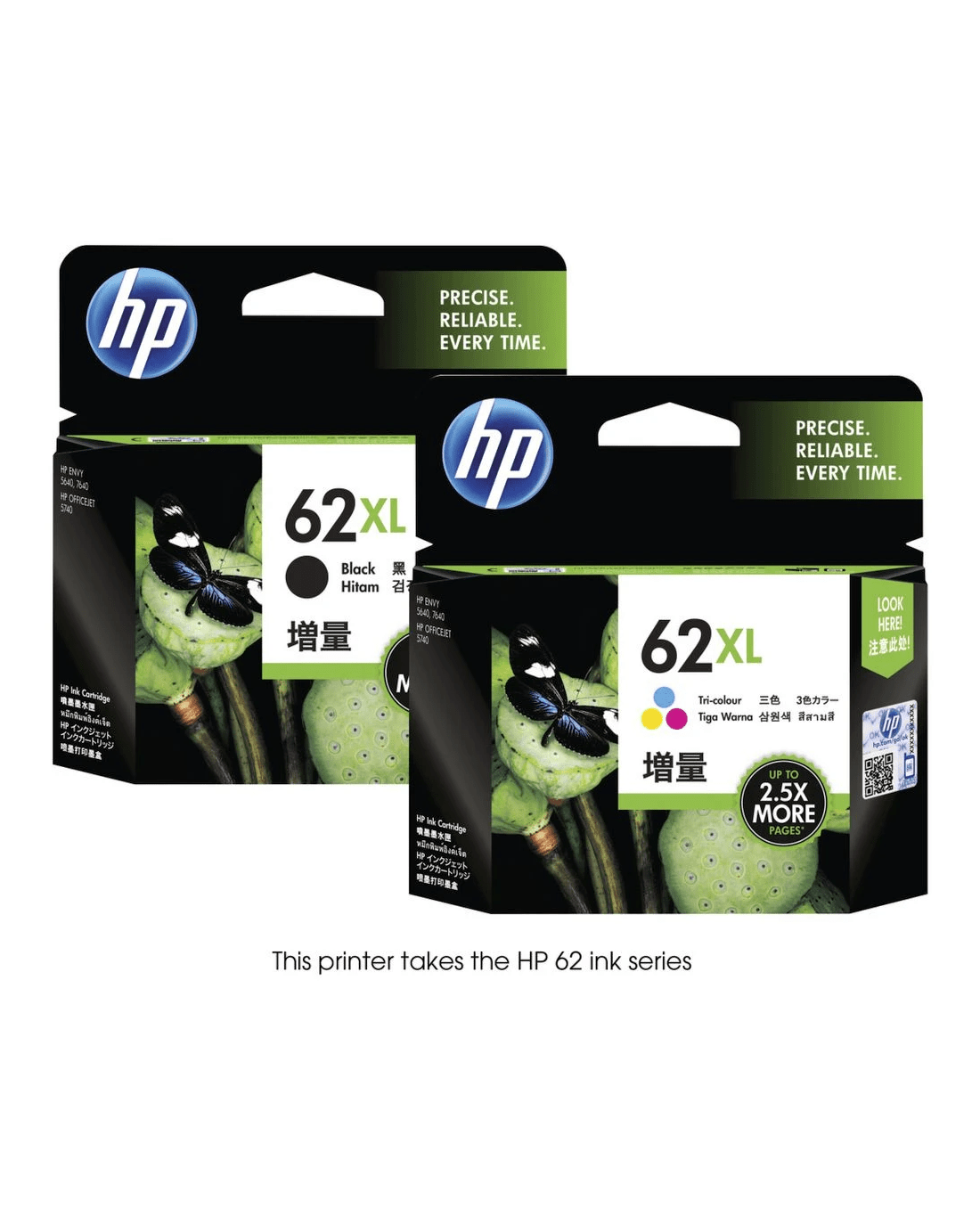 - This printer uses HP 62XL Black & 62XL Colour Ink Cartridges.