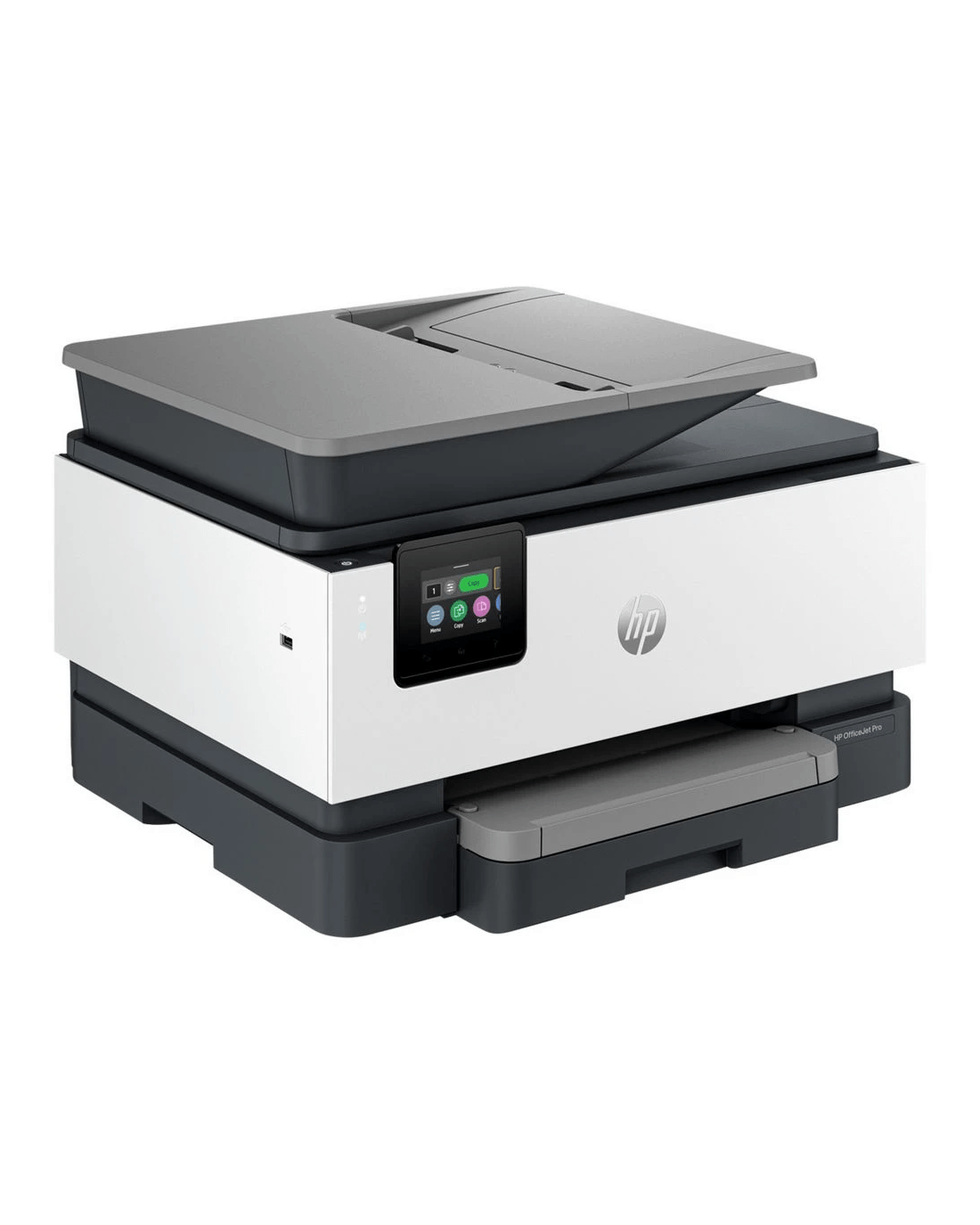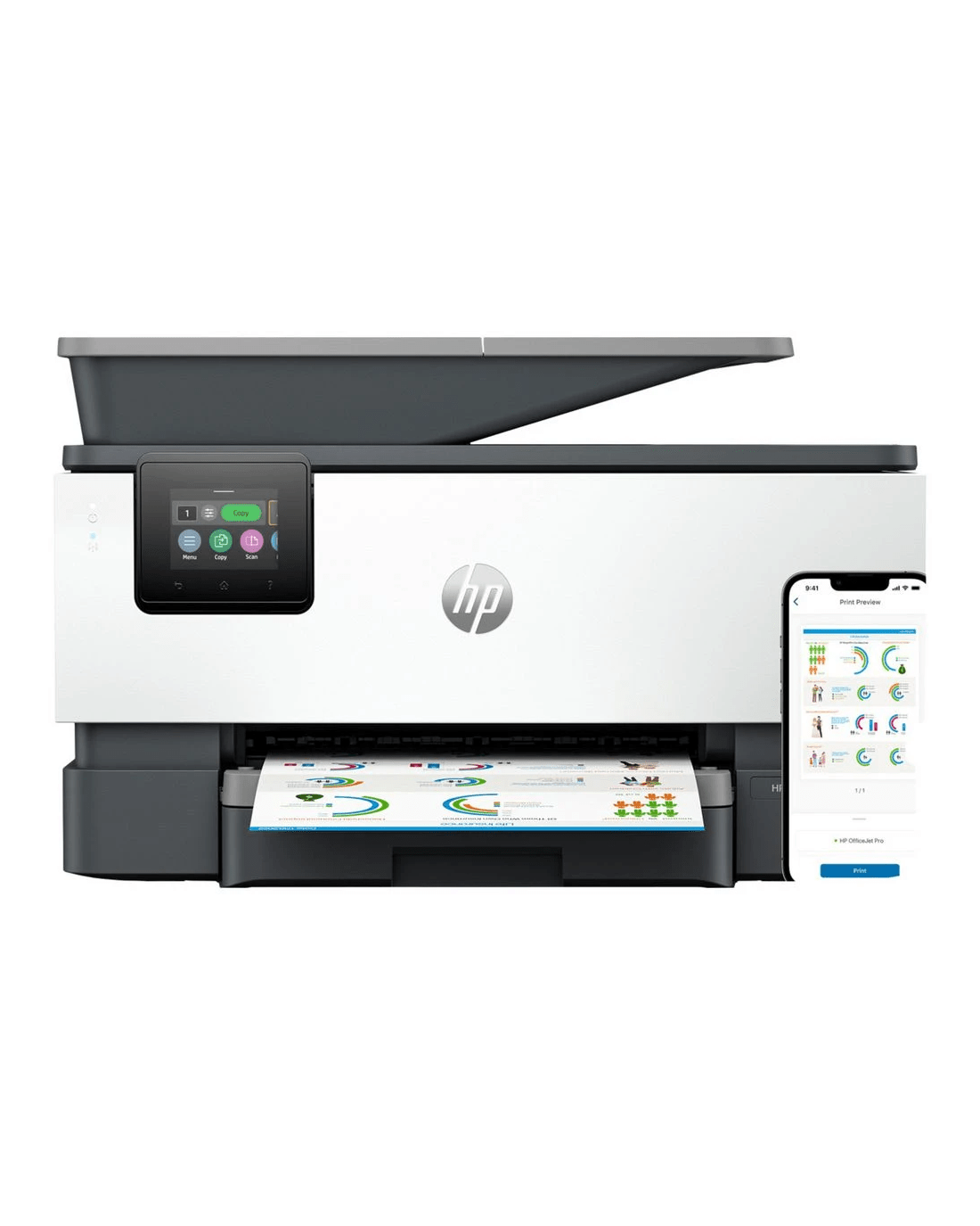 Print like a pro with this high-performance colour inkjet printer designed for small and medium businesses. The 9122e delivers professional-quality prints, copies, scans, and faxes, all powered by HP’s most reliable dual-band Wi-Fi with self-healing technology for uninterrupted connectivity. Featuring a 250-page input tray, automatic two-sided printing and scanning, and an intuitive touchscreen, it’s built for productivity. With HP Instant Ink included for 12 months, you’ll never run out of ink—plus, it’s made with 40% recycled plastic for a sustainable choice. Print from virtually anywhere using the HP Smart app for easy mobile printing.