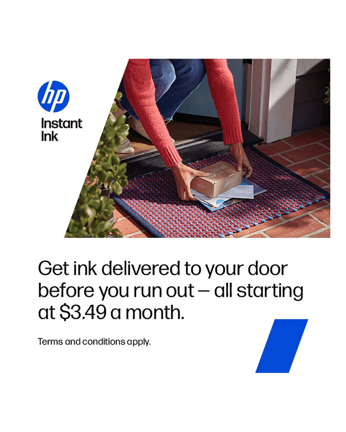 • Get ink delivered to your door before you run out with HP Instant Ink ― all starting at $3.49 a month.