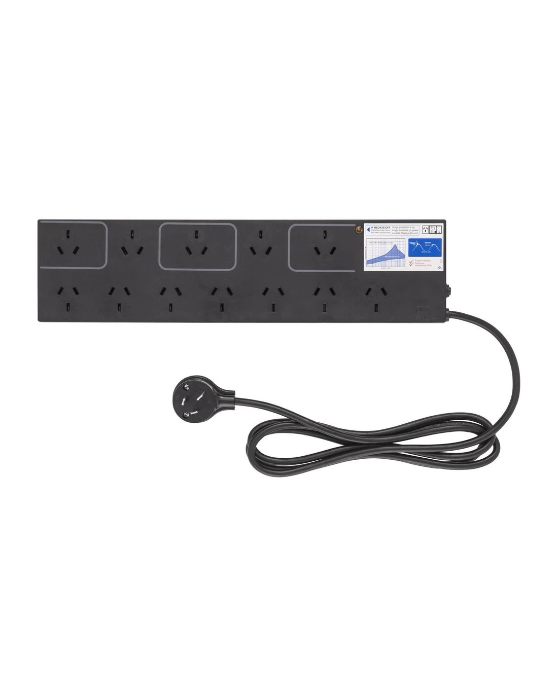 This HPM 12 outlet power board has spacing for 3 transformers as well as surge protection and RFI filtering to protect your connected devices. On top of that, the safety overload protection ensures that, should an overload occur, this powerboard has a safety cut-out. Plus, it has long 1.8m lead so you can get power where you need it.