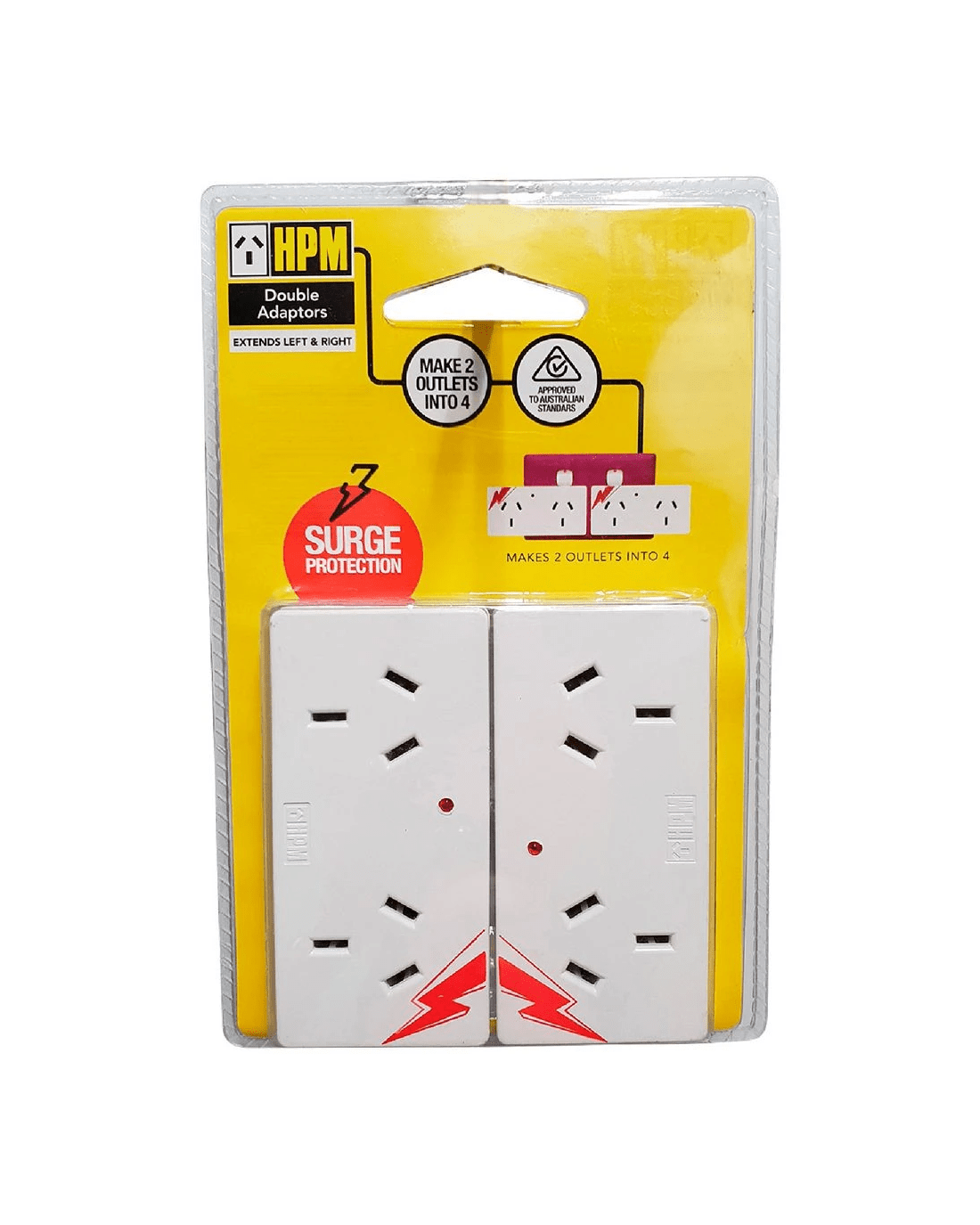 These HPM Adaptors come in a handy twin pack so you can connect 2 devices to each one, allowing for the connection of up to 4 devices. One of the adaptors aligns to the right and the other to the left so you can turn a double powerpoint into a quadruple powerpoint.